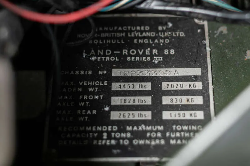 This lot will be auctioned via Iconic Auctioneers, The Classic Sale at the NEC Classic Motor Show 2025 on Sunday the 9th of November, NEC, Birmingham, B40 1NT. Introduced in 1971, the Land Rover Series III remained in production until 1985 and represented the final evolution of the traditional Series Land Rovers before the advent of the 90 and 110 models Originally supplied by Leyland Cars to Southern Counties Garages Ltd of Crawley, with the original bill of sale on file. Finished in a classic Bronze Green and Limestone Land Rover colour scheme with a Safari hardtop, deluxe front seats and trim, rear seating and original fittings retained Powered by the 2¼-litre petrol engine driving via a manual gearbox, with Fairey overdrive and free-wheeling front hubs for more relaxed cruising Factory options when new included a wing mirror, fuel filler lock, towbar, deluxe interior trim, heater, seatbelts and steering column lock, all specified on the original sales invoice – all retained to this day Purchased by our vendor in 2012 and used sparingly since, remaining in running and driving order Supplied with the original bill of sale and accompanying paperwork