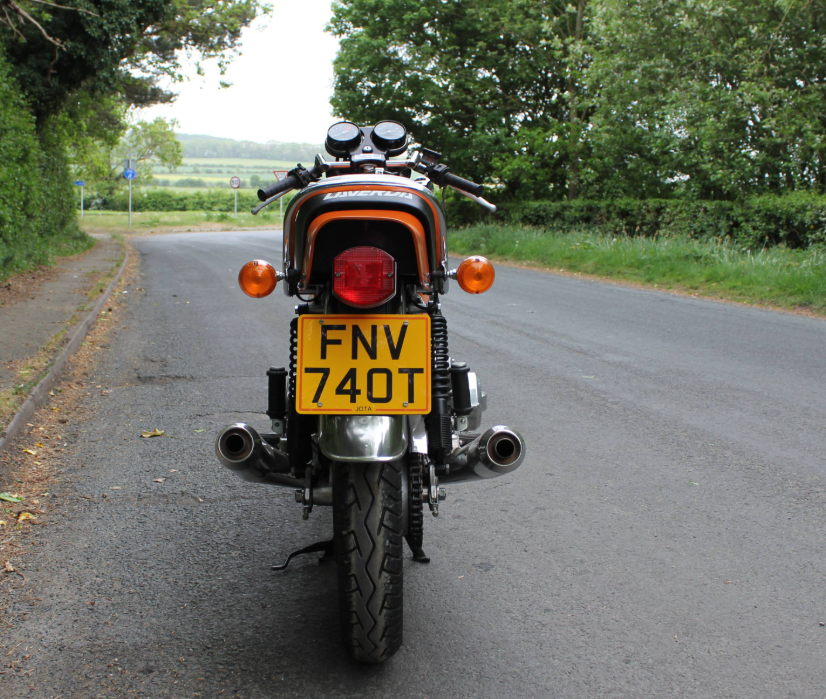Immensely powered by fully rebuilt 981cc, air-cooled, DOHC inline three-cylinder engine, this Jota is a very capable classic motorcycle and was the fastest production motorbike of its era. The very distinctive 3-1-2 exhaust system produces a fantastic note and tucks underneath the bike allowing for good cornering clearance. The recently serviced twin front and single rear Brembo brake discs offer reassuring stopping power and the rigid frame and rebuilt Marzocchi forks and shocks provide excellent stability through the corners. In 2021, the bike also received a fresh pair of tyres and tubes, a new cam chain, a new exhaust system, new fuel lines, new starter relay, new spark plugs and leads, the carburettors were stripped and cleaned, and the valves were cut and reground. The SFC Orange paintwork has a delightful finish and is complemented extremely well by the shot blasted and coated Silver frame. FNV 740T has sleek lines running throughout, while maintaining a very aggressive and muscular curb appearance. The chromework holds a very bright finish and pieces together what is an exemplary overall condition. This Jota comes with a superb history file accompanied by a repair and tune up guide, and photos from when it was rescued from a barn before its restoration. Jota's inception came when Laverda's UK importers, Slater Brothers,created a tuned a version of the Laverda 1000 3C. They incorporated sporty racing-derived parts such as a free breathing exhaust, and high lift camshafts to provide an extra touch of exuberance. Through racing success of UK Production series wins in 1976, 1978 and 1980, the Jota cemented itself into motorcycle history. Renowned for its bold design, epitomising Italian flair, and its raw performance the Jota has proved popular among collectors and enthusiasts nationwide.