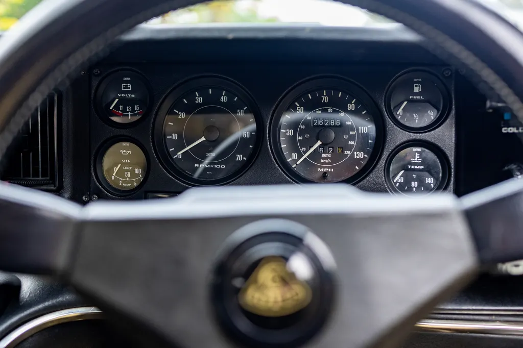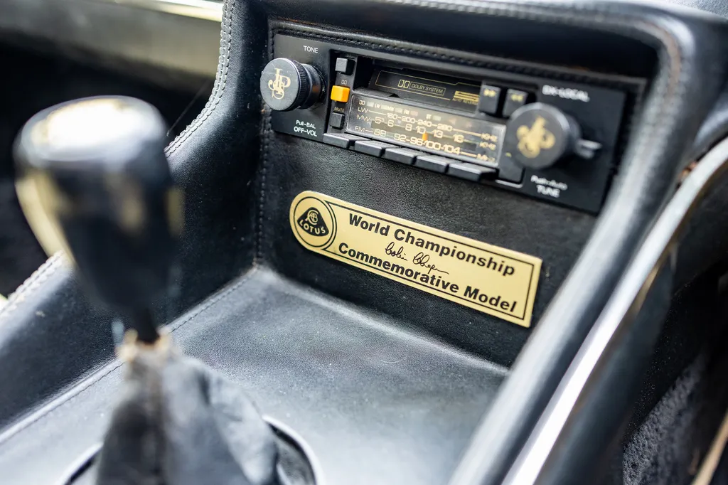 Our vendor is hugely enthusiastic about Lotus, with an impressive collection of memorabilia, various single seater race cars and a wonderful selection of Lotus road cars. This special Esprit has been in his tenure for around 15 years, in which time it has won awards at shows, features in various magazines and been thoroughly enjoyed, but is starting to see less use. One of the attractions of this example is just how original it appears to be; so many of these cars have now been overly restored, but this one just looks 'right', and whilst it has some small bits of micro-blistering and crazing in places, that just goes towards further verifying its originality— it is 46 years old after all! The interior is in remarkably good order, with very few signs of use or ageing, and the numbered plaque and correct Mario Andretti signed steering wheel are still in place. Thankfully, the original Hitachi digital stereo with 'JPS' knobs is still in place too, a part which would surely be almost impossible to replace if it were missing. A cambelt service along with a new exhaust and some work on the cooling system were carried out by Paul Matty Sports Cars in 2019 at a cost of over £2,800, with only around 1,000 miles covered since. This Esprit has been quite well documented, with a feature in CAR magazine's 50th anniversary issue in 2016, a six-page article in Classic Car magazine in 2013 and was used to help promote the 'Heritage Racing Special' limited edition Omologato watch. This example is ready to be enjoyed once more by another enthusiastic owner, supplied to auction with an impressive history file and a V5 registration document. Consigned by Fraser Smith
