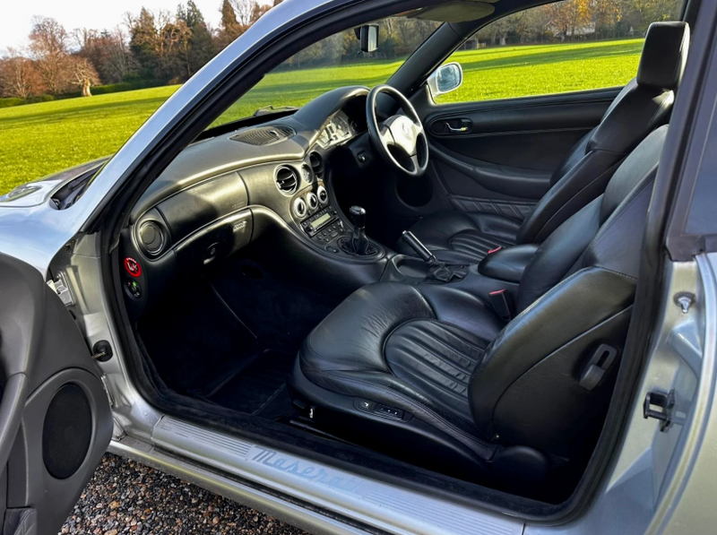 2000 Maserati 3200GT Coupe Twin Turbo Manual. Date of first registration 30.06.2000. Road tax per annum: £360. 79 thousand miles. Supplied new by Graypaul Maserati Sheffield. Presented in Grigio Touring metallic with Nero leather interior and matching Nero carpets, this 2000 Maserati 3200 GT offers the perfect blend of classic Pininfarina styling and thrilling twin-turbo performance. It features a 3.2 Litre, Twin Turbo V8, which is mated to a six speed manual gearbox. Some of the features on this Maserati include Full Carbon Interior Kit, CD Changer, Heated Front seats with Memory and more. The history file is made up of old MOTs, Spare Keys, Original Book Pack, Invoices, Up to date V5 and Specification Sheet. This Maserati is in lovely condition throughout. It drives superbly and the boomerang rear lights make it rare and collectible. It will be supplied with a new service. For further information or to arrange a viewing, contact our sales department on 01425489575 or sales@classicconnection.co.uk. £13,995 any inspection welcome and delivery available.