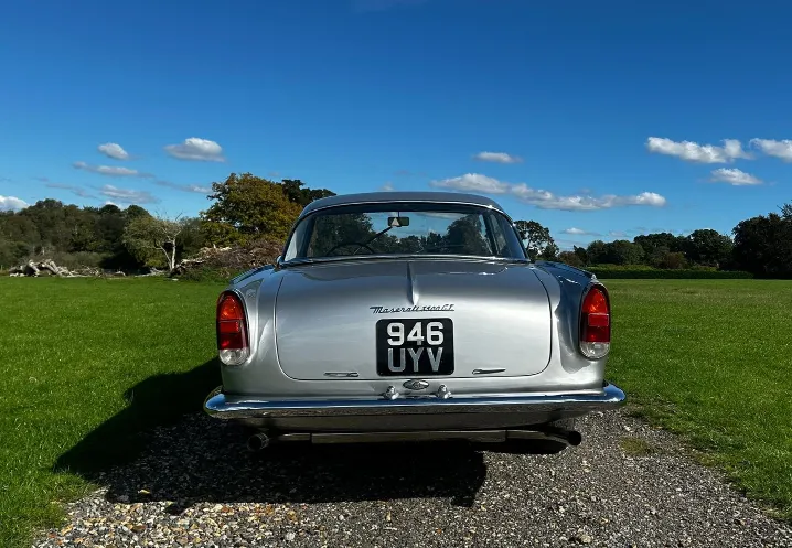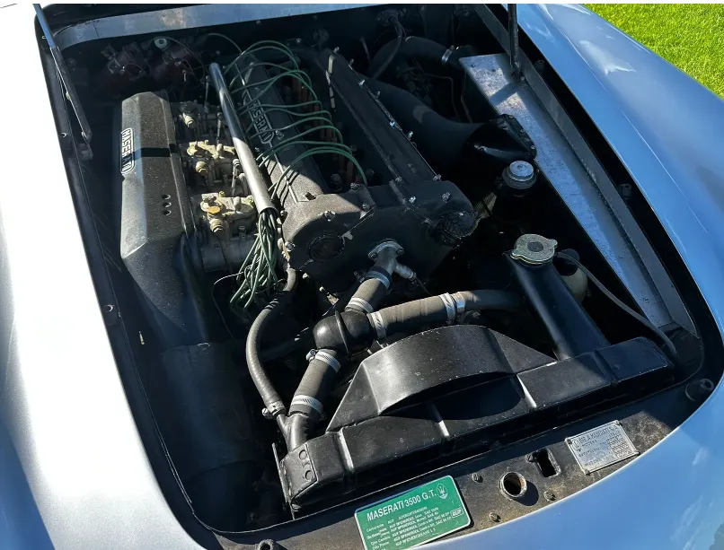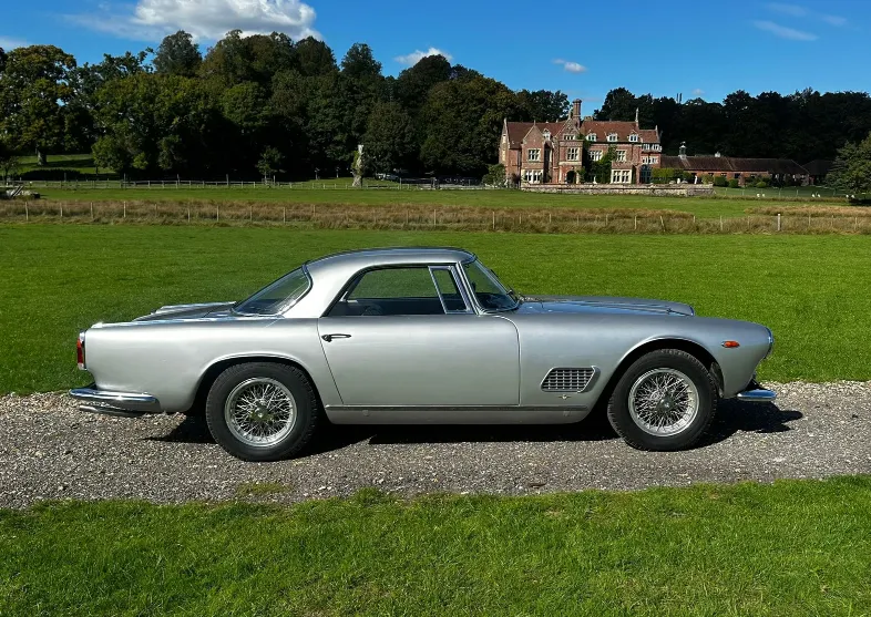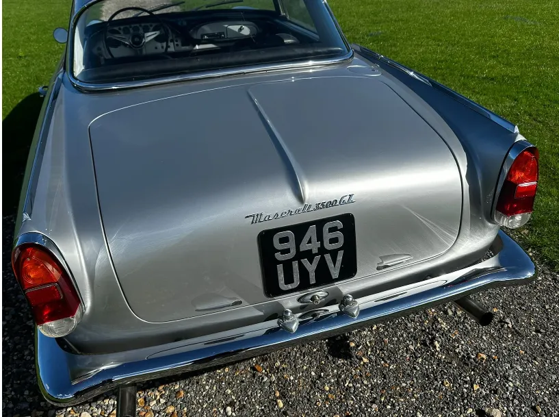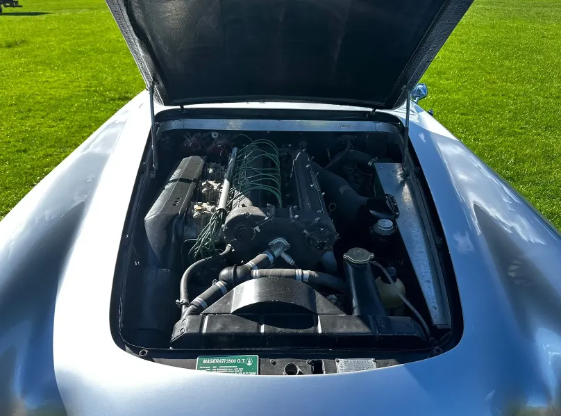 Maserati 3500GT 1961. 52 thousand miles. Silver with black leather interior, this matching numbers car was supplied to its first Italian owner on the 10th August 1961, it was then later exported to the US. It underwent around £75,000 of work in the US around 2008/2009 of which all the invoices are in the file. It has recently undergone a full engine rebuild including new crankshaft and pistons etc. Other recent work has included new shock absorbers and ball joints. It has also just undergone a full back to bare metal respray. The way this car drives is testament to its recent upkeep, it not only fills you with confidence to be able to drive it anywhere, it is a real pleasure to sit behind the wheel and listen to the roar of that six cylinder twin spark engine. The history comprises of two folders with rafts of receipts, original build sheet and delivery note, certification from Maserati Classiche and more. The underneath is in superb rust free original condition, the engine bay is in restored condition and the front seats have been completely restored in Italy. What an incredibly rare and beautiful car that starts, drives and stops as well as it possibly could, especially with its disc brakes all around, hidden behind those exceptional Borrani wire wheels and spinners. For any further enquiries or to arrange a viewing, contact our sales department on 01425489575 or sales@classicconnection.co.uk. £199,995 any inspection welcome and delivery available.