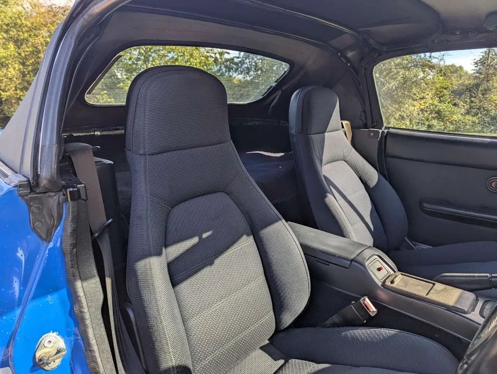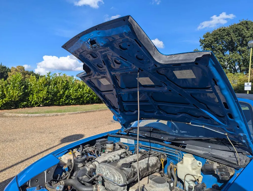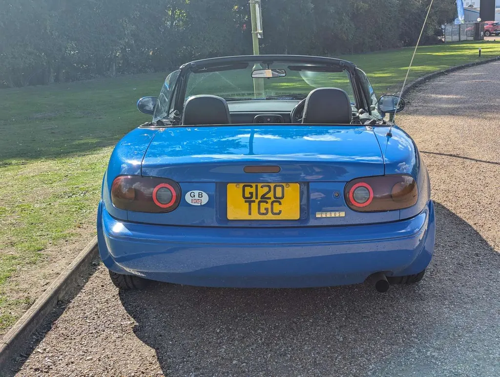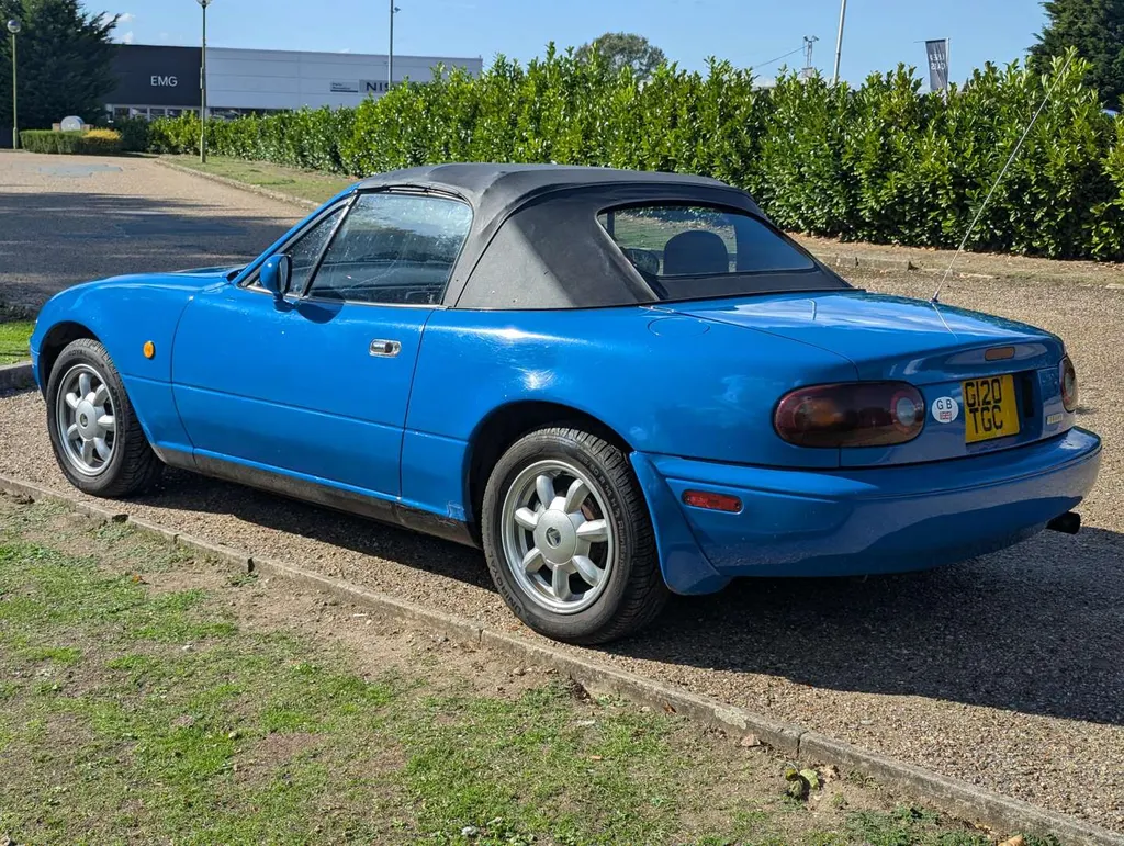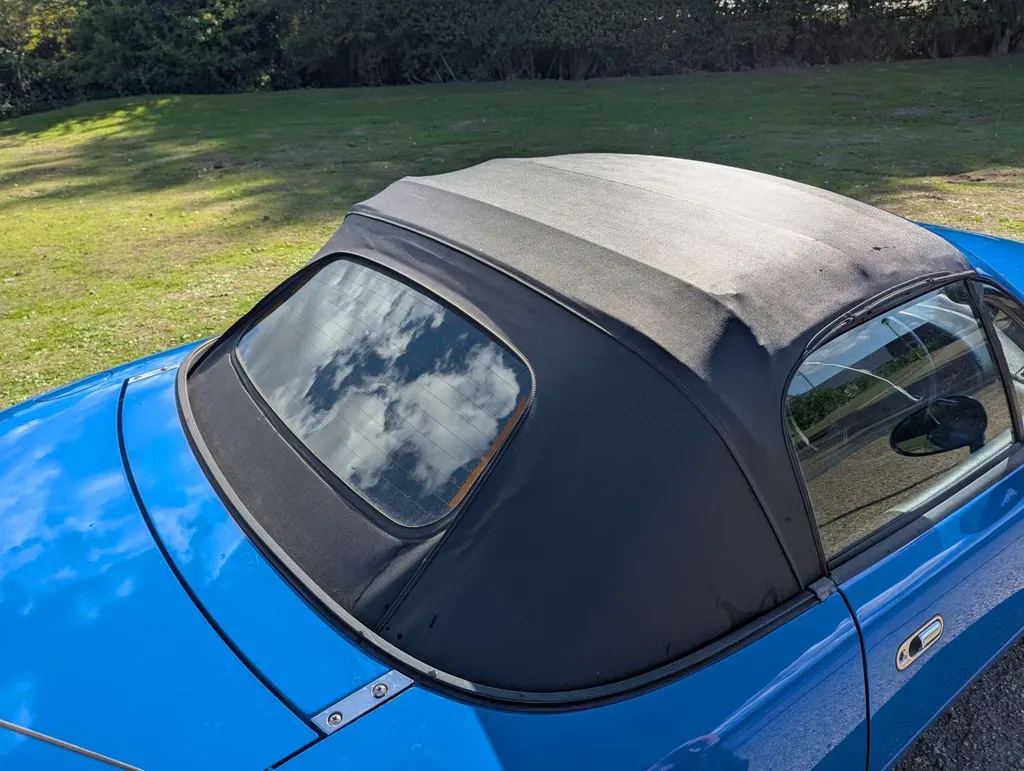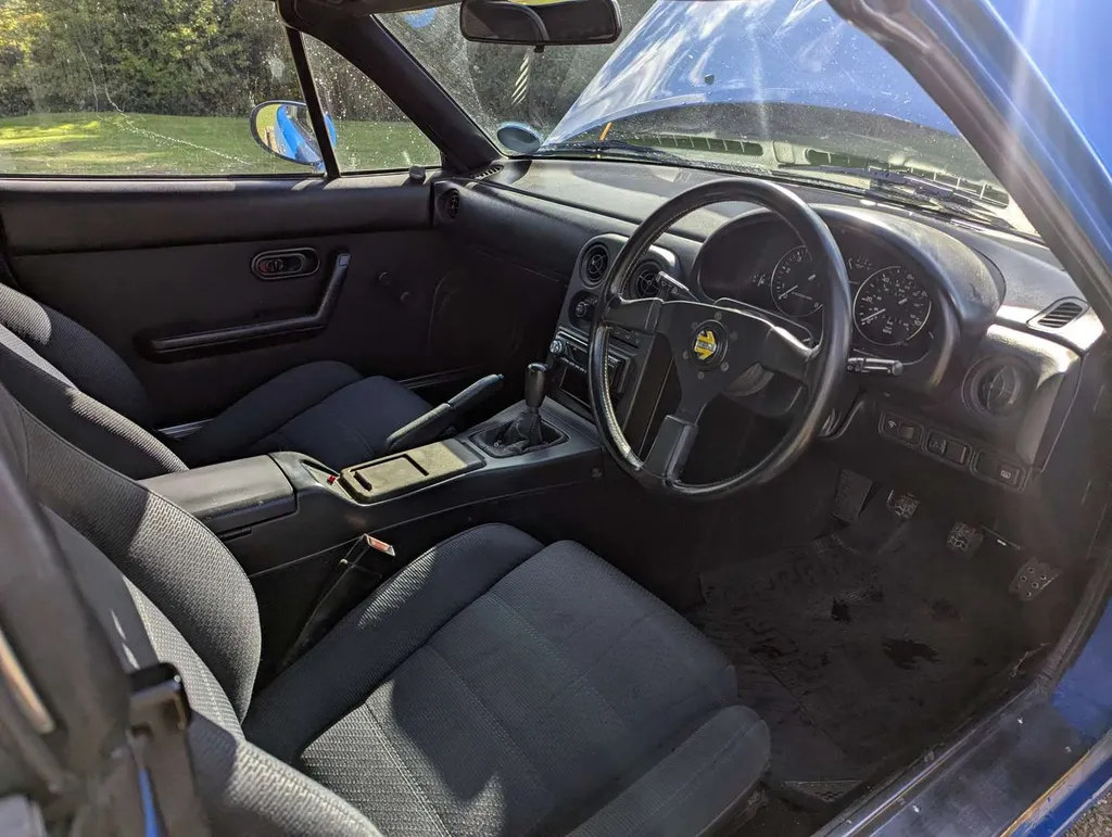 1600cc. This blue Mazda MX-5 was manufactured in 1990, spent its first decade in Japan and was first registered in the UK on 5th January 2001. The vendor, who has owned it since 2007, tells us it has been an excellent runner and very reliable. The car was declared a Category C write-off in 2006 but it has continued to be put through an MoT almost annually, including during the last few years while kept in secure storage. Its current certificate will remain valid to 18th September 2026. The hood and rear heated glass were replaced in 2010, and the car received a new cambelt and 2 auxiliary belts in 2018, around 2000 miles ago.It comes with a spare key, jack, and elasticated half-cover for the roof. Paperwork includes a printed list of all works during the current owner's tenure, plus a good collection of receipts for maintenance and repairs, and the latest V5C which is in the vendor's name. The odometer is reading 167,420km (104,030 miles). Not specified