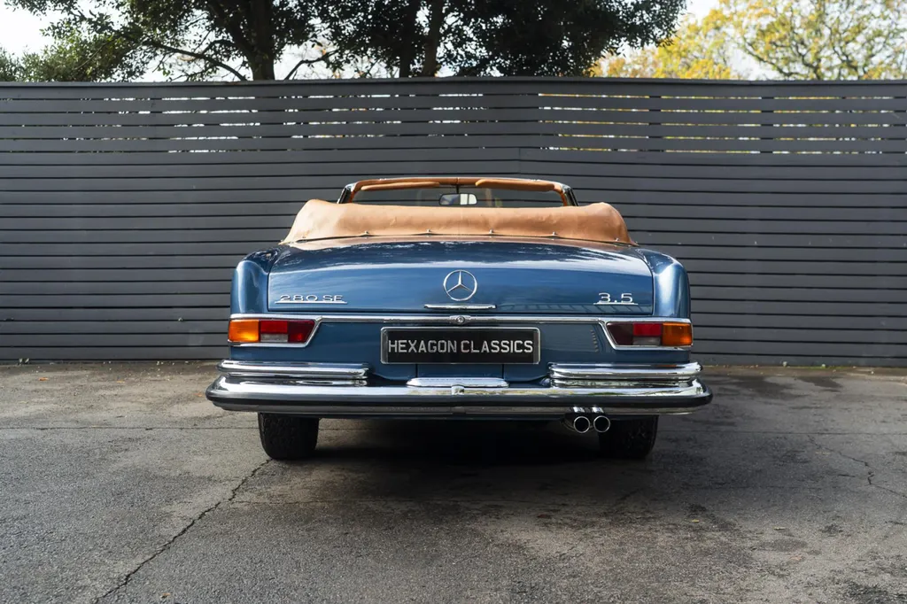 Hexagon Classics are delighted to offer this superb, hand-built Mercedes-Benz 280 SE 3.5 Cabriolet in rare right-hand drive form. Built to exceptional standards, these models rivalled Rolls-Royce and Bentley convertibles as the ultimate four-seat luxury cabriolets. Only in production between July 1970 and September 1972, the 280SE 3.5 is notable as one of the last Mercedes' saloons to be hand built. 1 OF ONLY 68 RIGHT HAND DRIVE CARS, CORRECT MATCHING NUMBERS SPECIFICATION INCLUDES:- METALLIC PAINT, LEATHER INTERIOR, FLOOR SHIFT AUTOMATIC, FACTORY AIR CONDITIONING, ELECTRIC WINDOWS, BILSTEIN SHOCK ABSORBERS, VENEERED DASHBOARD, BLUE HOOD, MICHELIN XWX WHITEWALL TYRES, IMMOBILISER AND BLAUPUNKT STEREO RADIO. Introduced in late 1969, the V8-powered W111 280 SE 3.5 replaced the six-cylinder 280 SE, appealing to buyers seeking top-tier craftsmanship without stepping up to the extravagant 600. Its hand-built body featured subtly refined styling and a Bosch fuel-injected 200 bhp V8 producing 211 lb-ft of torque: praised for its performance, refinement, and distinctive exhaust note. With 0-62 mph in under 10 seconds and a top speed exceeding 125 mph, the 3.5 delivered effortless power, aided by vacuum-assisted disc brakes and coil-sprung independent suspension for superb comfort. Crafted at Sindelfingen, each example was lavishly equipped, leaving only paint, trim, and Becker stereo options to the buyer. As the final model to feature this celebrated body style, the 280 SE 3.5 is now highly prized by collectors. Previous owners have included The Verve’s frontman Richard Ashcroft. This ultra-rare right-hand drive example features the desirable floor-mounted 4-speed automatic gearbox, air conditioning, stereo radio, electric aerial, and over mats. Extensively recommissioned recently it will be supplied to the new owner fully serviced. It is complete with original handbook, and history file showing restoration work, with invoices from leading classic Mercedes-Benz experts such as O’Keeffe, Roger Edwards and Nigel Cooper Coachworks. Recent works have also included a new Michelin tyre set, road springs, Bilstein shock absorbers and under bonnet matting, door rubbers and exhaust tail pipes. A truly refined four-seat cabriolet, the 280 SE 3.5 combines classic elegance with modern usability, cruising comfortably at today’s speeds with exceptional refinement. Now available for viewing at our London showrooms.