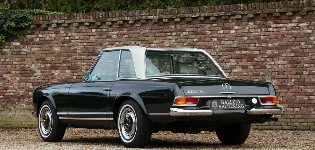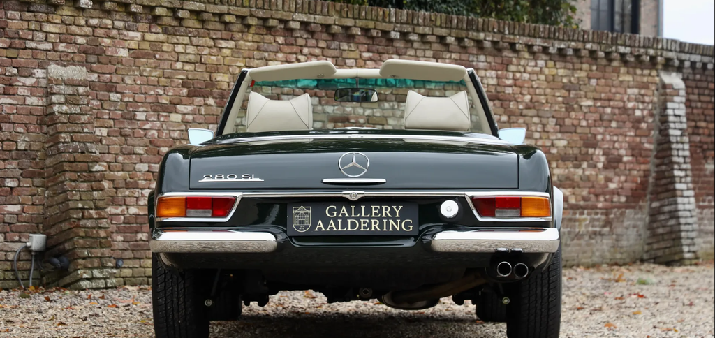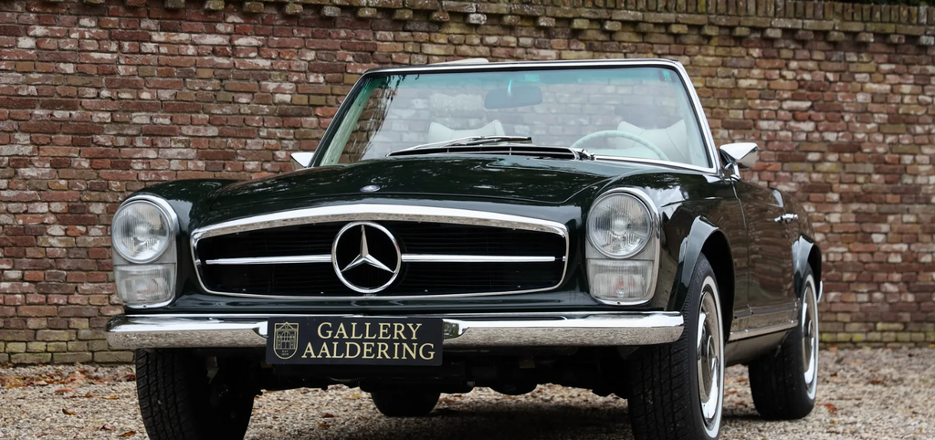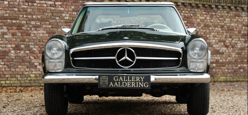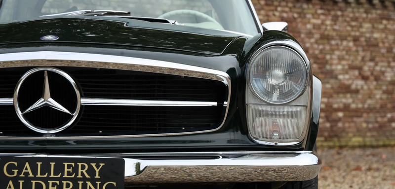 A car engineered for eternity, that’s what we’re looking at here. A true classic that never begs for attention, yet effortlessly commands it, much like a piece of music that moves you from the very first note. According to the official Mercedes-Benz Data Card, this example is fully matching numbers and matching colors. Finished in elegant Dark Olive over Parchment leather, it’s a combination that radiates sophistication. And to make it even more charming: it features the highly desirable ivory steering wheel, a detail guaranteed to bring a smile to any enthusiast’s face. This Pagode was professionally restored and further refined by Mercedes-Benz Classic. The bodywork is beautifully crisp, the paintwork is of exceptional quality, and the chrome trim shines like jewelry. Step inside and you’ll find everything in equally remarkable condition: the seats, carpets, and headliner appear as refined and fresh as the day they left the factory. The pictures on our website speak for themselves. But beauty is only half the story. A Pagods may look like a sculpture on wheels, yet this 280 SL is above all a driver’s car. From the moment you set off, you can feel it: this roadster was built to cover miles with grace and confidence. Whether it’s a spirited run to dinner for two or a grand tour toward Italy or the Côte d’Azur, this SL handles it with ease. The inline-six delivers a wonderfully warm and refined tone: confident, cultured, and unmistakably present. Ride quality? Solid, poised, and every bit as regal as a proper Mercedes-Benz should feel. Thanks to the extensive restoration and mechanical work, you can expect a car that’s not only beautiful, but technically sound and ready to be enjoyed. The Pagode is iconic, not simply a classic, but a timeless masterpiece. Successor to the legendary Gullwing, and a car that has only grown in admiration and value over the decades. A Pagode is not merely owned, it is cherished. This example delivers everything you expect and just a little more. A truly refined Mercedes-Benz, matching numbers, restored at the highest level, and presented in fantastic condition. A stunning piece of automotive history. Interested in this remarkable Mercedes-Benz? Contact Gallery Aaldering today. Established in 1975, we have decades of experience exporting fine automobiles worldwide. Feel free to inquire about global shipping options.