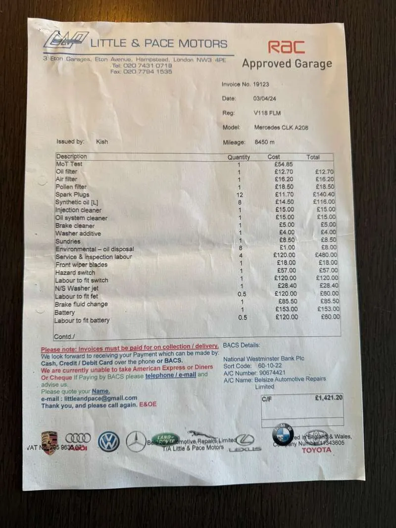 This lot will be auctioned via Iconic Auctioneers, The Classic Sale at the NEC Classic Motor Show 2025 on Sunday the 9th of November, NEC, Birmingham, B40 1NT. The 2000 Mercedes-Benz CLK Elegance was part of the C208 generation (1997–2002), which received a facelift for the 2000 model year Powered by a 3.2-litre naturally-aspirated V6 offering 215bhp and 229 lb/ft through a 5-speed automatic gearbox with Tiptronic mode Currently indicating 9,500 miles. Purchased by our vendor in July 2025 at 8,500 miles with just one former registered keeper. Subject to some paint correction and then ceramic coated in September 2025 (£750) Finished in Brilliant Silver Metallic over Anthracite leather and is fitted with an AMG styling package (bumpers and side skirts) It's an Elegance specification so very well equipped from new including Parktronic, heated multi-contour memory seats, Xenon headlamps, a fire extinguisher, factory draft deflector, Bose sound system and boot-mounted CD multi-changer Replacement service book stamped from 2008 to 2025, invoices including servicing at Little and Pace of Hampstead (£2,949.49, April 2024), new Pirelli tyres in 2023 and a Mercedes replacement key fob in 2025. Always garaged Presented with an MOT valid until April 2026, showing no advisories, and a CTEK battery conditioner