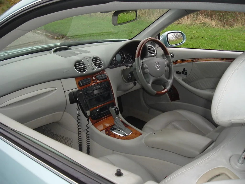 We are pleased to present this superb C209 Mercedes CLK 500 Elegance Coupe. It has covered 119700 miles (increasing as I'm using it) at the time of writing and comes with a 12 stamp service history, full bookpack, two keys and is HPI clear. The colour scheme really sets the car apart. It is finished in Ice Blue metallic and has light Alpaca (grey) leather. Our extensive preparation has included replacing brake pipes that were a previous MOT advisory, fitting new front tyres, propshaft centre bearing, transmission service and full engine service including replacing all 16 spark plugs, air mass meter, all 4 springs, both air filters and an oil change. The overall condition is superb throughout and not to be confused with the many tired and abused examples that exist. The current MOT is until November 2026. With 306 bhp it performs and drives very well yet also offers touring consumption of around 30 mpg. The first owner of this car was a London based lady who used it sparingly for the first couple of years of its life. There have been 5 owners in total including ourselves. It's most recent owner (prior to me) was from the Milton Keynes area and kept it for nearly 15 years before part exchanging it with a Mercedes main dealer from where we sourced it. The specification includes 5 speed auto transmission, cruise control, trip computer, heated front seats, air-con, climate control, electric glass sunroof, ESP/ABS, heated and electrically adjustable front seats, bi xenon headlights, front & rear parking sensors and auto lights. Several years ago I ran a previous generation CLK 430 for a year and was very impressed by it, finding it to be no thirstier than a 2.0 Mondeo. V8 CLK's are an overlooked car in the current market. Had BMW built V8 versions of it's E46 coupe they would be highly sought after today and would likely command 5 figure prices. This is basically MB's version of such a car. ULEZ exempt and £430 per annum RFL. On the road the CLK 500 have about 95% of the talent of the bigger CL500 but without the complexity and major expense of Active Body Control and vaccuum operated features. Just the cost of repairing ABC alone on a CL500 could buy a good CLK 500 such as this... The CLK uses conventional springs and dampers with much lower ownership costs as a result. Please don't hesitate to get in touch with your interest.