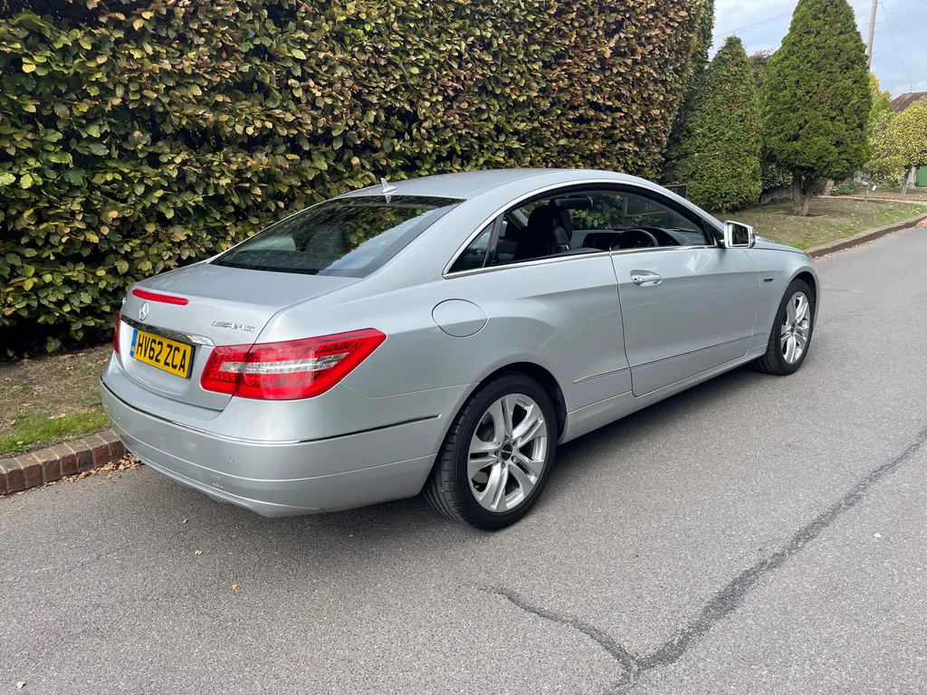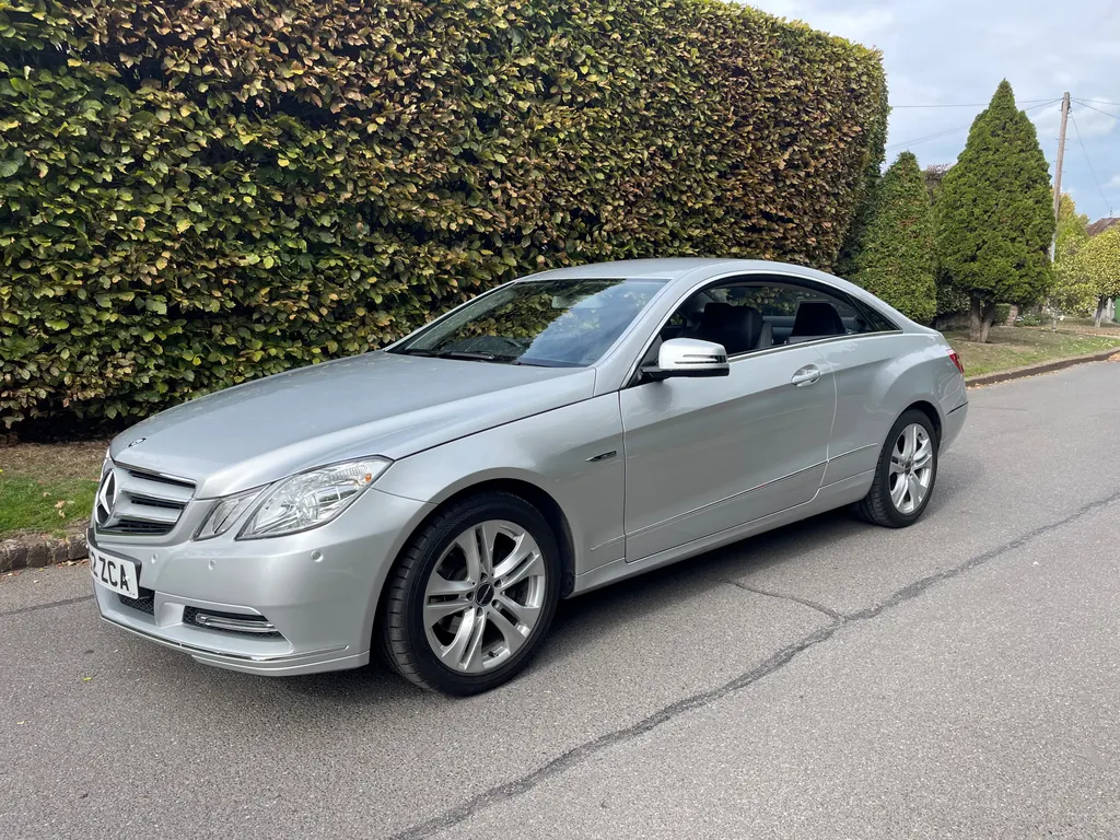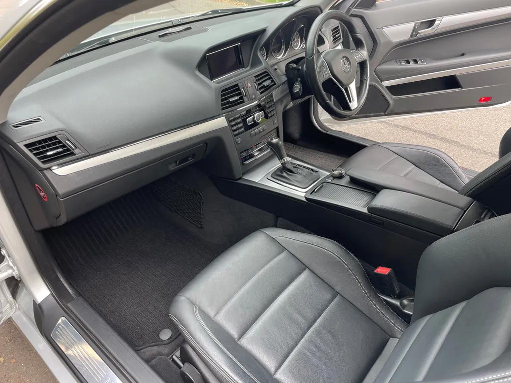 MERCEDES-BENZ E250 BLUE EFFICIENCY COUPE 2012: Iridium Silver with Black hide interior. 17” twin spoke alloy wheels. 25,000 miles only from new. Climate control, heated front seats and other usual refinements. £10,995