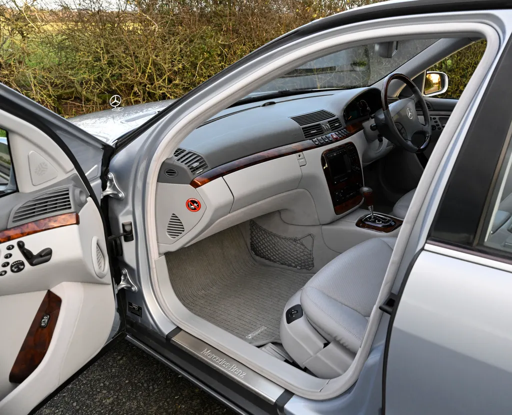 Make: Mercedes-Benz Model: S500L Year: 2001 Reg: FA51YHE Vin: WDB2201752A259389 Please note that this is a PRIVATE SALE; the ad is only hosted on our website. This 2001 Mercedes-Benz W220 S500L is presented in stunning Quartz Blue exterior and virtually untouched grey perforated leather interior. It is to note that this is a S500 L, meaning it is a long-wheelbase car, as the pictures shows, a vast amount of legroom is present for all the occupants. This Mercedes-Benz S500L has only travelled a scant 43000 miles from new, and it has had only 2 owners. The condition of the car reflects that. To the exterior, the paint displays beautifully with only a few small battle scars that you would expect to see on a 24 year old car. The wheel arches, a common vulnerability for the W220 Mercedes-Benz, were repaired in 2023, completely completing the fresh look of the car to represent the mileage. At the same time the arches were completed, a new full stainless steel exhaust was installed, complementing the incredible M113-E50 V8 5.0L engine beautifully; the exhaust produces a really enjoyable deep tone under acceleration while not being any louder than the factory and not compromising the quiet comfort of the Sonderklasse vehicles. The Mercedes-Benz V8 engine is well-known for its dependability, power, and sound, and it starts and runs smoothly on this W220 S500L, with no unusual noises, leaks, or vibrations. To the interior, the grey perforated leather is virtually unmarked and the rear seats are almost untouched, it still preserves some of the brand new car smell to it. To the engine compartment which is impeccably clean and tidy, a true testament of the car this car has received. A very extensive service history folder is presented and it is mostly filled with Mercedes-Benz main dealer invoices, with the last service recorded less then 3000 miles ago. As proof of the committent the previous owner had toward the car, a new battery has been fitted in 2024 by a Mercedes-Benz main dealer. This car comes with all of its original books, 2 keys, tools and the original car phone and first aid kit are still present with the car. As a true Sonderklasse should be, this Mercedes-Benz S500L W220 was fitted with almost every option available back in 2001 including, but not only, soft lock doors, cruise control with speed limiter, automatic headlights, automatic wipers, AM/FM radio with signal amplifier, heated seats all around, ventilated front seats, dual-zone climate control, moonroof, TV, cd and cassette player, power seats with lumbar support all around. Everything works as intended for how far I have been testing it. Four new tyres, new wipers and new headlight bulbs have been installed to make this 2001 Mercedes-Benz S500L ready to be driven and enjoyed for many more miles to come by the future owner. To sum it up, this is a rare long-wheelbase S500 Mercedes-Benz that has been kept to the highest standards and still feels like new, wants for nothing but to be driven and enjoyed for many more miles to come. Delivery is available, contact me for a quote. Call Richard Biddulph. Mobile ++44 (0) 7967 260673 Simone Della Corte Mobile ++44 (0) 7377070943 Sales & Valuations Vintage & Prestige of Northampton Ltd. richard@vandp.net www.vandp.net Showroom: 2 Ryehill Ct, Lodge Farm Industrial Estate, Northampton NN5 7UA Viewings & Visits Strictly by appointment only please. We have on site long term storage for over 200 cars with 24 hour security & covered trailer delivery to customers anywhere in Europe.