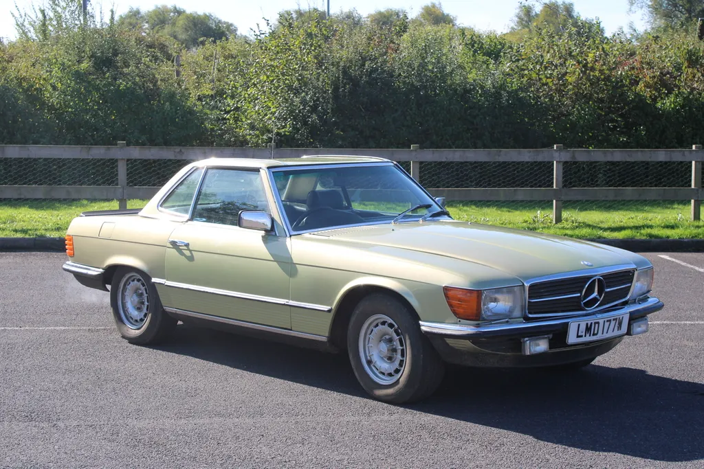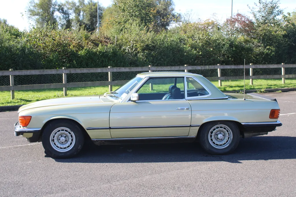 1983 Mercedes Benz 500 SL R107 in Thistle Green Metallic with a Cyprus Green metallic hard...