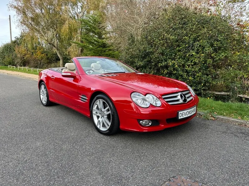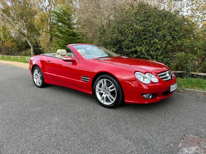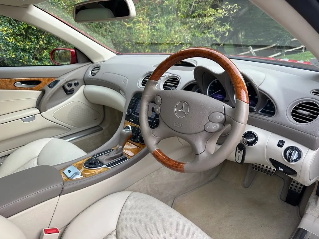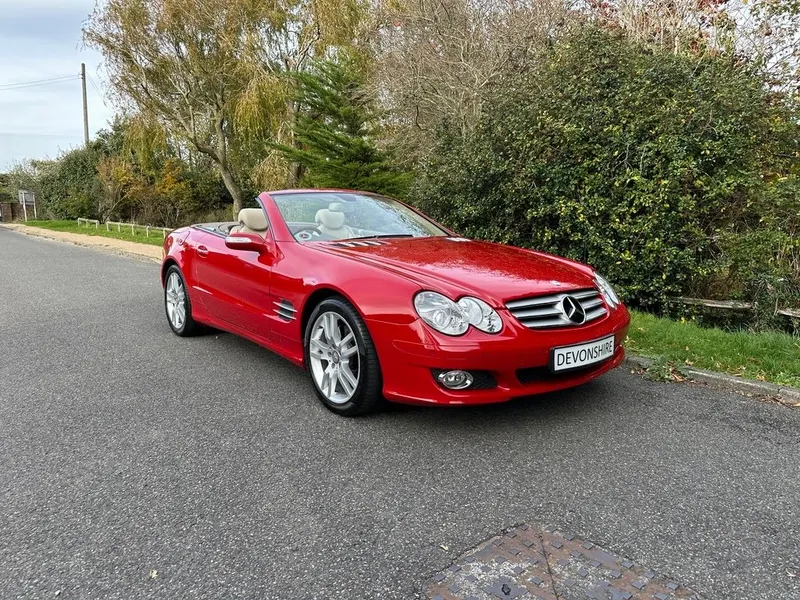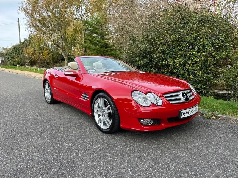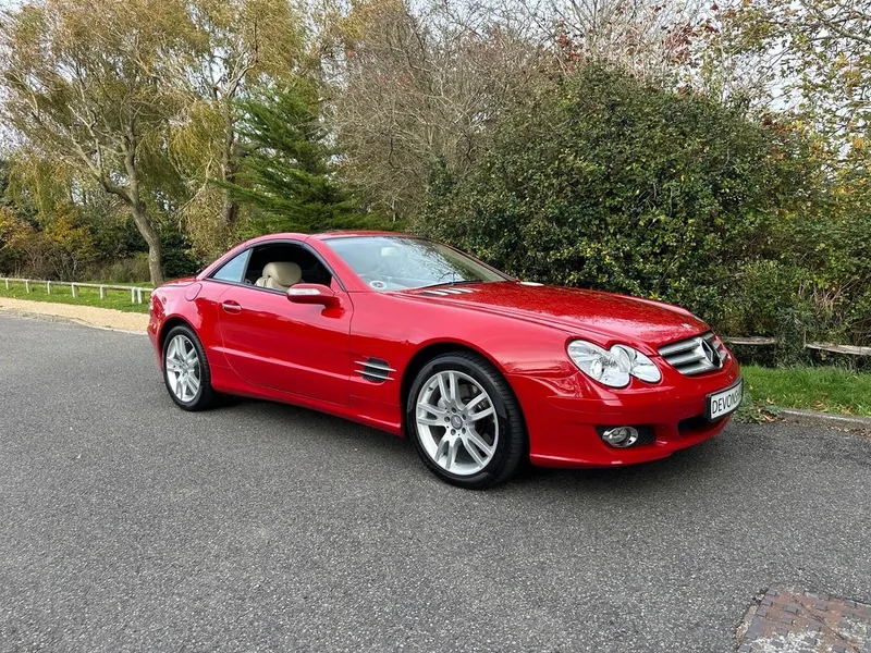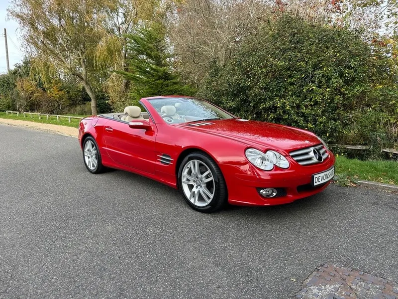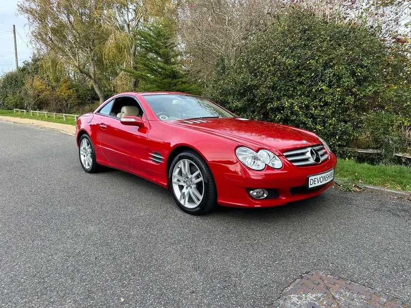 Mercedes Benz SL350 V6 3.5 2007 7 G-Tronic Automatic. ONLY 31000 MILES FROM NEW. Finished in Rare Fire Opal Red with Full Extended Sand Beige Leather.Factory Options Included:Glass Panoramic Roof, Colour Sat/Nav, Electric Heated Seats, Air Con cooling Seats, Wood/Leather Multi Function Steering Wheel, BOSE Sound Pack with 6 Multi CD, Walnut Interior Pack, Front/Rear Park Distance Control, 7 Speed Auto Gearbox , 18" MB Alloys, Electric Boot Opener, Xenon Headlights, Cruise Control. Fully Documented MB/Specialist Service History and Full MOT History. 2 Keys and Full Book Pack. We think it's One of the finest R230 Examples available in an Extremely Rare Colour Combination. UK Supplied Car. ULEZ Compliant .Please Call or email for more Detailed Information.