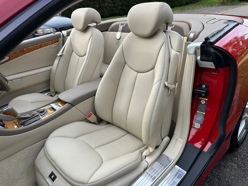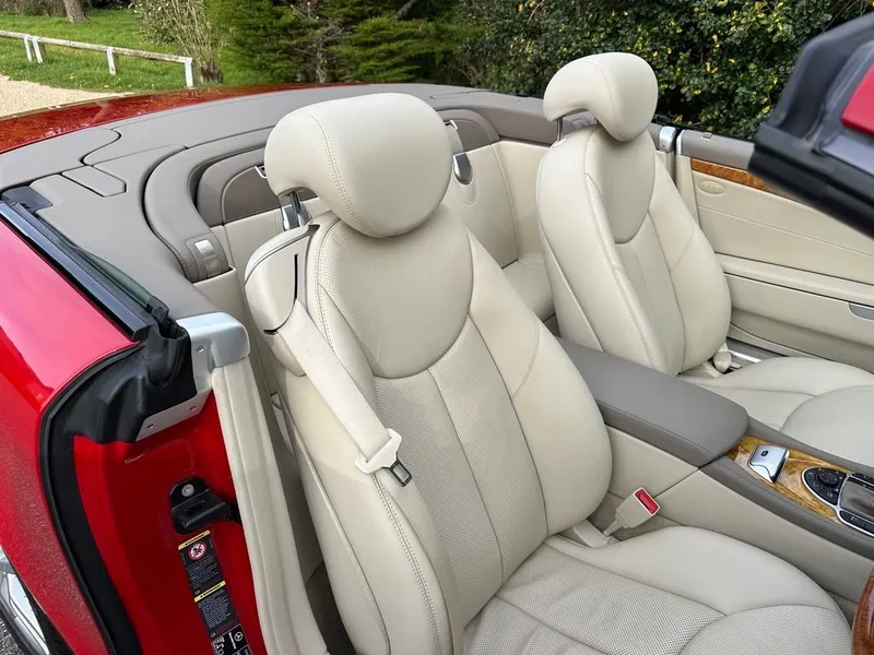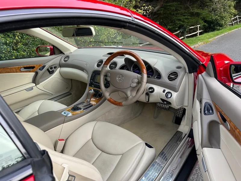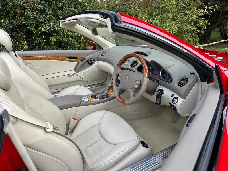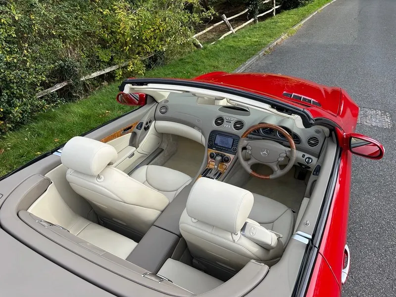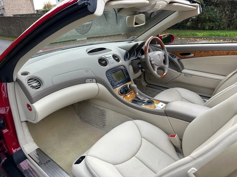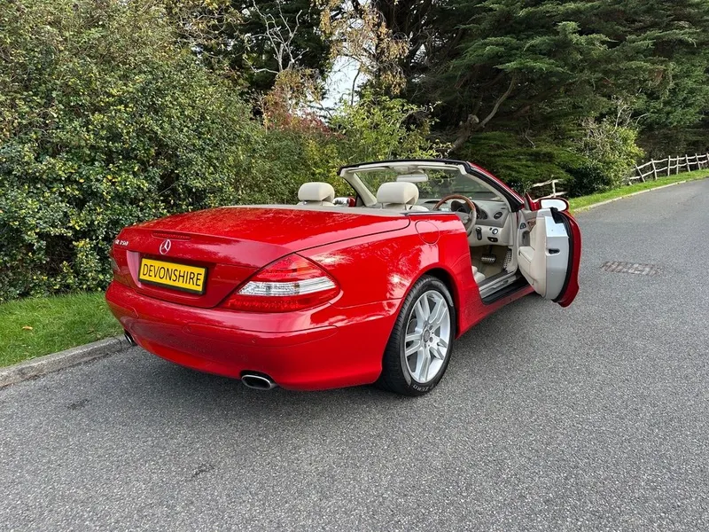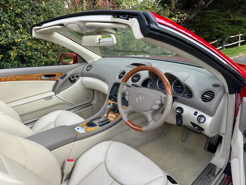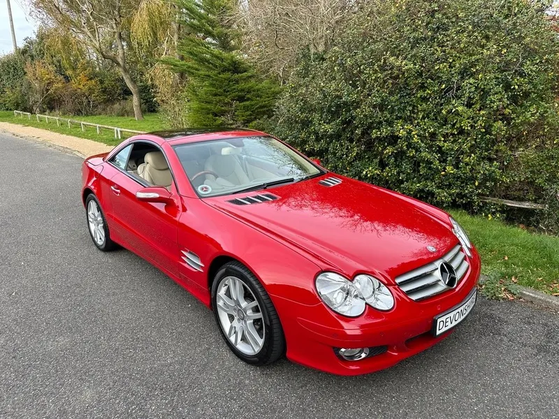 Mercedes Benz SL350 V6 3.5 2007 7 G-Tronic Automatic. ONLY 31000 MILES FROM NEW. Finished in Rare Fire Opal Red with Full Extended Sand Beige Leather.Factory Options Included:Glass Panoramic Roof, Colour Sat/Nav, Electric Heated Seats, Air Con cooling Seats, Wood/Leather Multi Function Steering Wheel, BOSE Sound Pack with 6 Multi CD, Walnut Interior Pack, Front/Rear Park Distance Control, 7 Speed Auto Gearbox , 18" MB Alloys, Electric Boot Opener, Xenon Headlights, Cruise Control. Fully Documented MB/Specialist Service History and Full MOT History. 2 Keys and Full Book Pack. We think it's One of the finest R230 Examples available in an Extremely Rare Colour Combination. UK Supplied Car. ULEZ Compliant .Please Call or email for more Detailed Information.