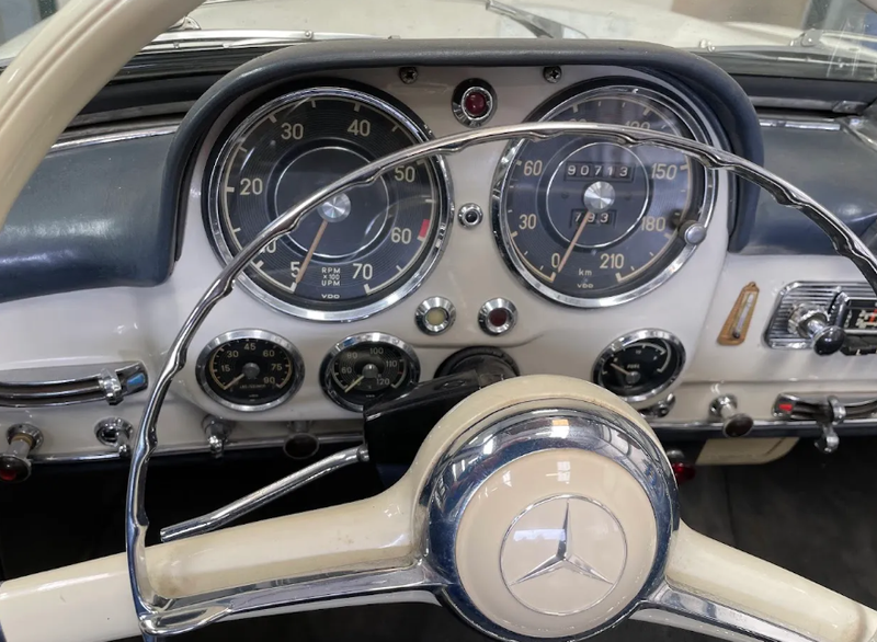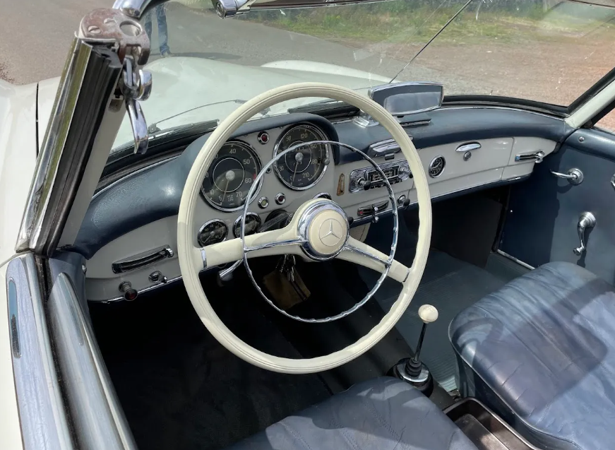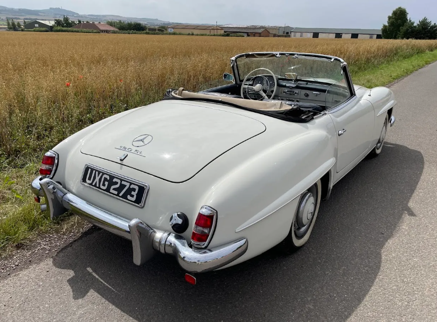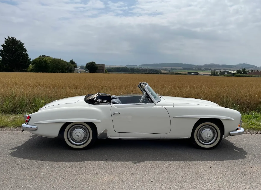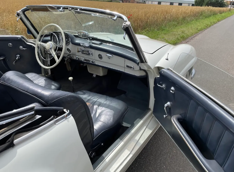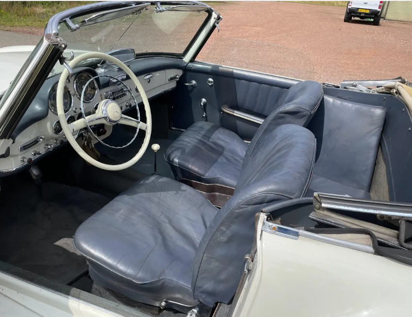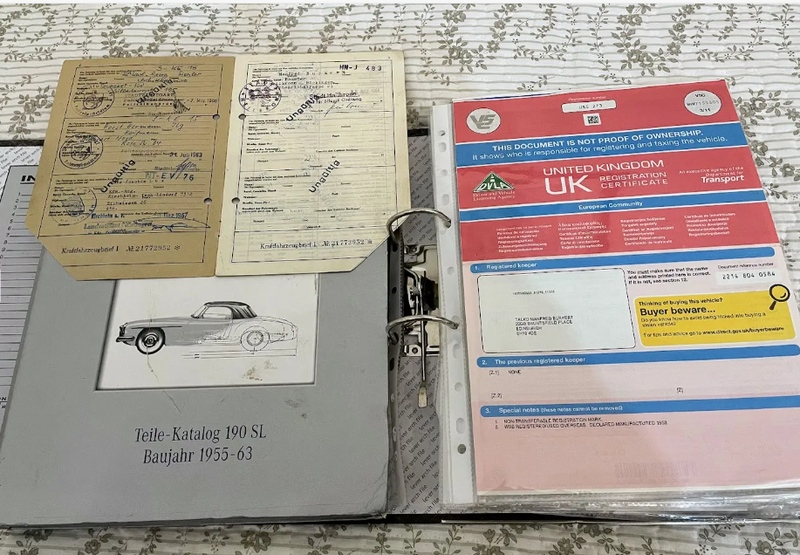 We are currently storing this 190 SL which has been in the same family for over 50 years. It drives well and has a well-documented history in Germany where it was reconditioned in 1969/70. This included a replacement Mercedes original W121 engine. The car’s recorded milage is 91k kilometres. It was imported by the family to the UK in 2004 and has had little use since then. The soft top needs replacing and the tyres are out of date. Apart from this it is in good condition. The owner is now prepared to sell the car. An ORIGINAL HARD TOP is also available with the car. Note that the competitive price is for the car as it is; it will need servicing, a new soft top etc for everyday use. Data: German Reg. 01/07/1959; VIN 121040 1095 00888; Mercedes Eng No. 64055/121 TS, 4 cyl, 1884cc; UK Reg UXG 273, 06/07/2004.