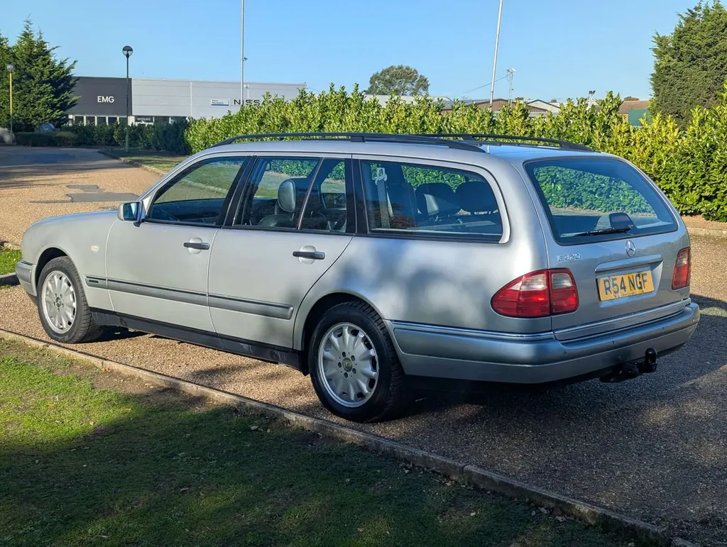 3199cc. The first owner of this silver Mercedes-Benz E320T Estate (S210) was reportedly a member of the Saudi royal family. It was first registered overseas but has been in the UK since July 1998. The car is accompanied by an impressive collection of invoices, MoTs going back to 2005, and the owner's book pack with service logbooks containing 14 stamps dating from 2002 to 2021 at 59,293 miles. Today the odometer is reading only 62,511 miles, and the car has an advisory-free MoT to 28th July 2026. There have been 4 owners from new.The vendor advises that one of the electric windows requires attention, and the aircon could do with a regas. The engine capacity stated on the V5C is 2300cc, but this is believed to be a typo. The VIN corresponds to a Mercedes E320 with 3.2-litre (M112) petrol V6 engine. The car comes with a spare pollen filter, wing mirror glass, and a copy of the final edition of Mercedes-Benz Classic magazine. Not specified