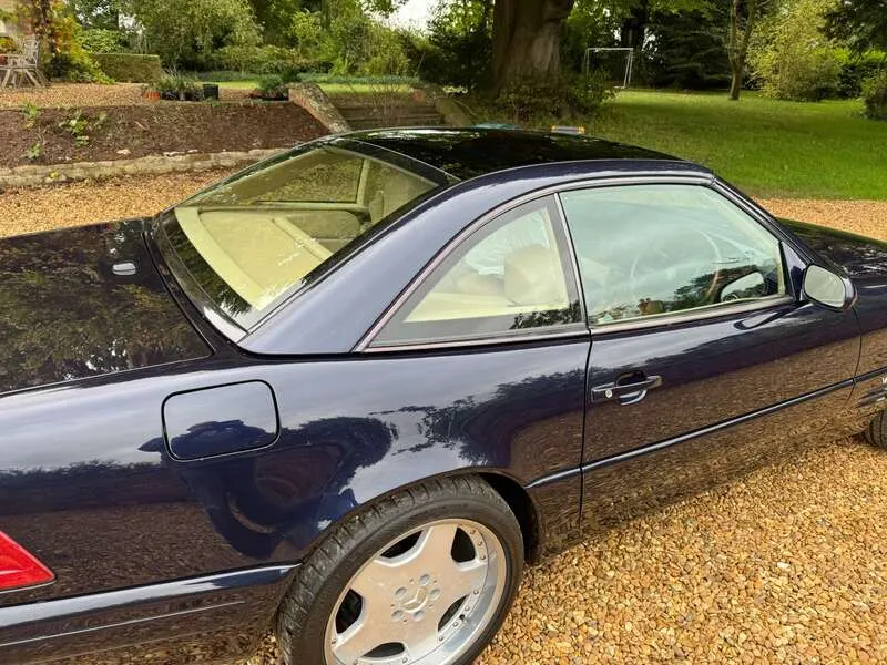 This lot will be auctioned via Iconic Auctioneers, The Iconic Sale at the NEC Classic Motor Show 2025 on Saturday the 8th of November, NEC, Birmingham, B40 1NT. At launch, the R129 SL was offered with a range of engines from six-cylinder through to V8, but the flagship of the line was the SL600 powered by Mercedes-Benz’ 6-litre V12. Developing 389bhp and 420lb/ft of torque, it delivered turbine-smooth performance combined with long-distance refinement, making it one of the most capable and versatile grand tourers of its era. With the V12 SL600 offered at around a third more than its V8-powered equivalent 600s when new, these were picked up by discerning buyers willing to spend a large amount extra for added performance and engine refinement. The R129 retained the bank-vault build quality of its predecessors but introduced contemporary design and advanced safety features, including a fully automatic roll-over bar, multi-link rear suspension, and dual-mode adaptive dampers. With the optional panoramic hardtop in place, it offered coupé-like usability, while the hydraulically folding soft top provided open-air motoring at the press of a button. This 2000 example is finished in Tanzanite Blue with a matching panoramic hardtop over a Java leather interior and is fitted with 18" split-rim AMG alloys wheels, wearing matching Continental Conti Sport Contact 3 tyres added in 2024. The interior remains a particular strength, with the well preserved Java leather upholstery showing light wear and creasing, complemented by extensive wood trim. More than £2,000 has been spent on replacement items including a new dashboard shell and wood/leather steering wheel, enhancing the overall presentation. The Blaupunkt Bremen head unit, fitted in 2023 at a cost of over £900, provides period correct audio with modern functionality. Some trim imperfections are noted including minor lifting to both door cards and light cracks to the veneer on the transmission tunnel. Recent expenditure includes more than £8,000 with the renowned Mercedes-Benz specialist, The SL Shop, in May of this year which includes front brake pads and discs, a gearbox service as well as a new mohair convertible soft top. Additional recent spending includes £4,000 with independent Mercedes-Benz specialists Riemans in June 2024. This work included a new fuel pump and filter, rectification of an oil leak, new lower suspension arms, anti-roll bar bushes, wheel bearings, spark plugs, brake fluid, and ancillary items. Service history is also recorded at Monarch Independent and ACMS Mercedes, with accompanying invoices on file. The history file is comprehensive, containing the book pack, invoices, expired MOTs and Tax Discs. It also contains the original Bill of Sale, perhaps indicating this SL was collected from the factory by its first owner, and confirming a purchase price of nearly 250,000 Deutsche Marks when new. The odometer currently shows around 57,000 miles, supported by the documented service history. The current MOT Certificate runs until May 2026 and since 2015, the car has consistently passed without advisories. Only for sale as our vendor's new G-Wagen arrived early and the SL is now surplus to requirements. The R129 SL600 remains one of the most accomplished and usable modern-classic Mercedes models, offering discreet styling, versatile usability, and the refinement of a V12 powerplant. At the guide price of £25,000–£30,000 with significant recent expenditure, this example represents excellent value for a well maintained flagship of the range.