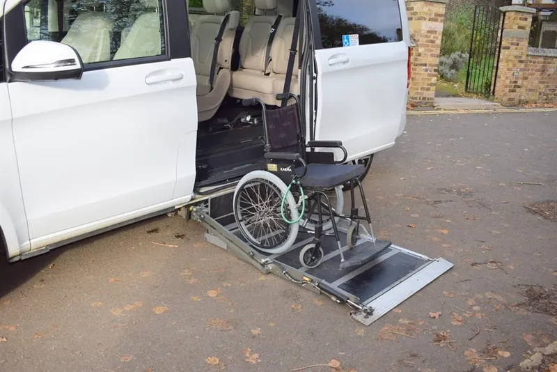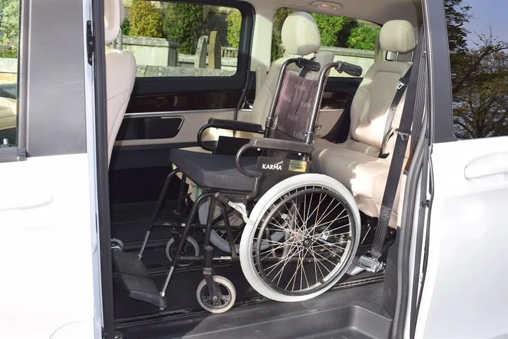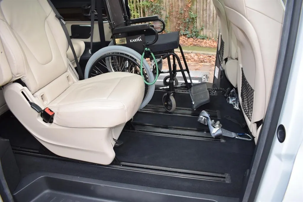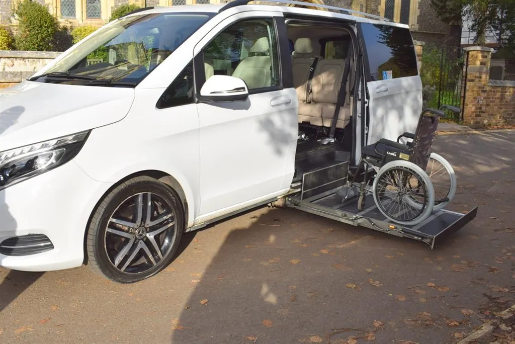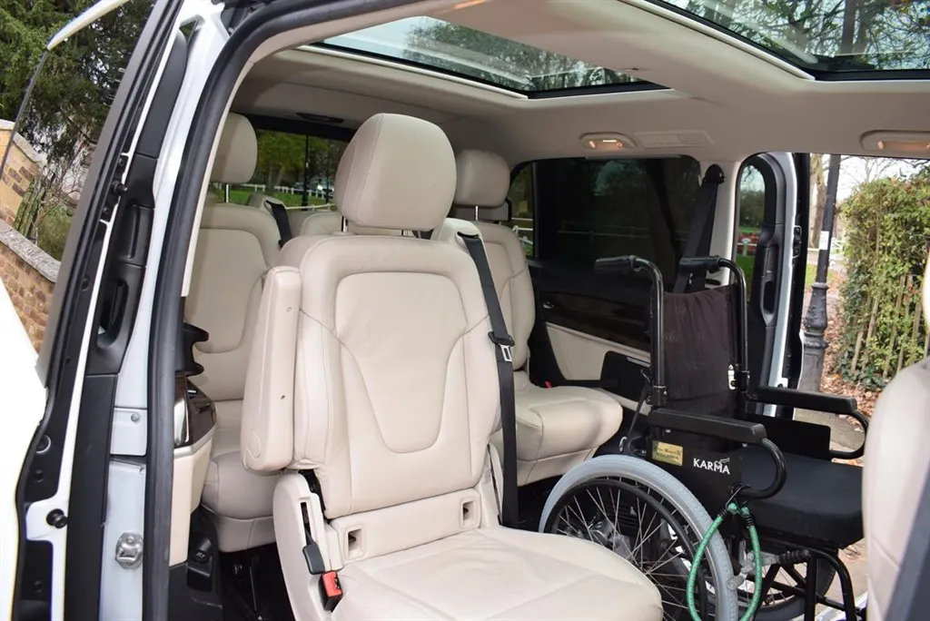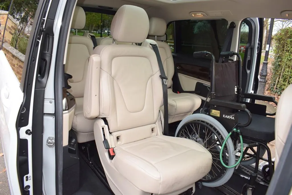 2018/68 Mercedes V250 D Sport 5 Door Auto with side wheel chair lift. 6 + 1 seater finished in unmarked White with panoramic roofs, alloy wheels and Cream leather interior. Only 21,000 miles with full Mercedes history. Fully loaded, Driving Assist, Towing Package, Memory Package, Comand, 360 camera and Burmester Surround Sound. Outstanding value at only £37,500