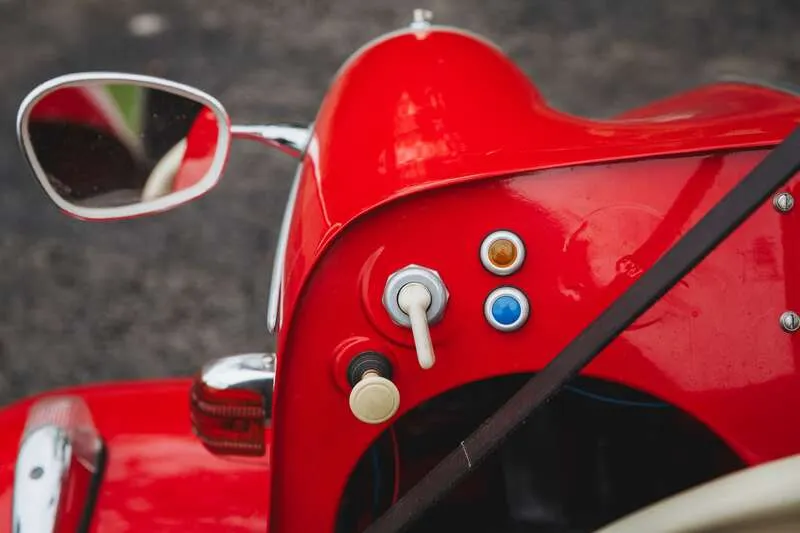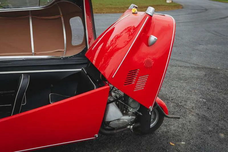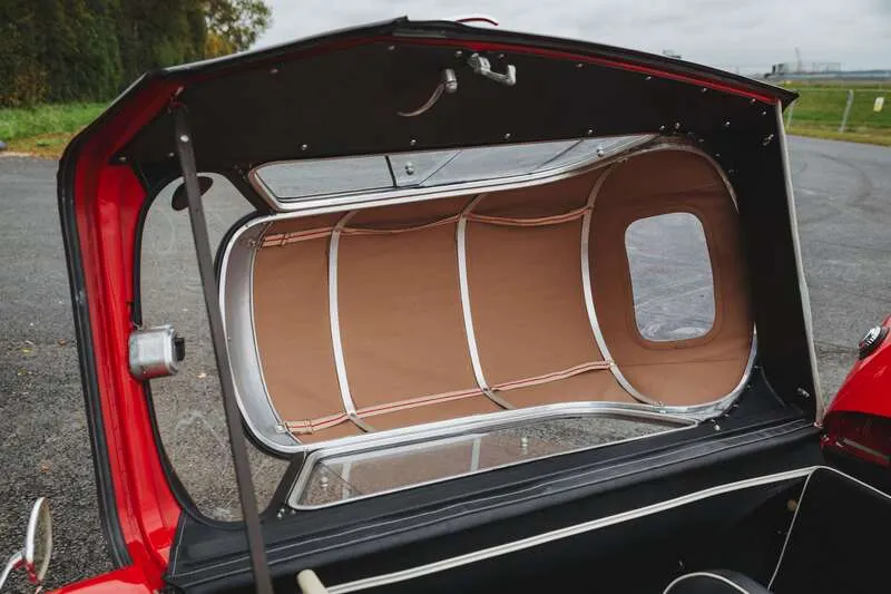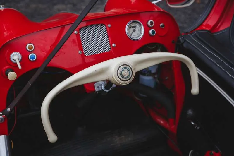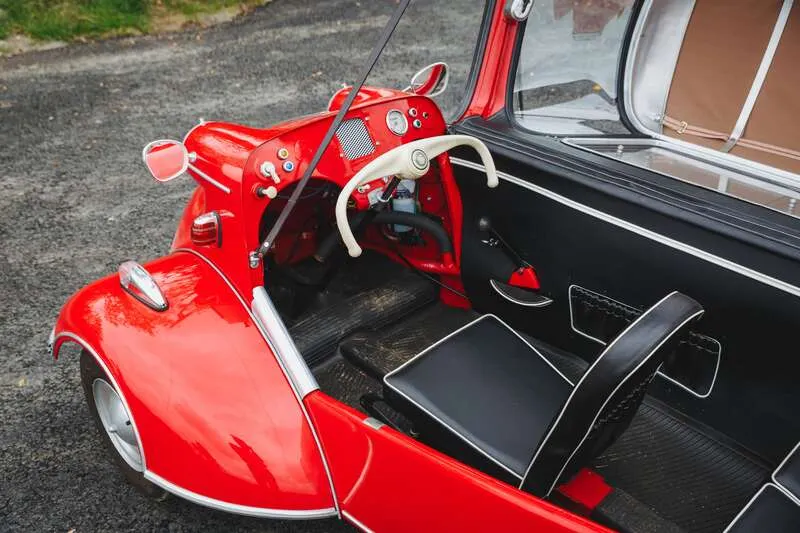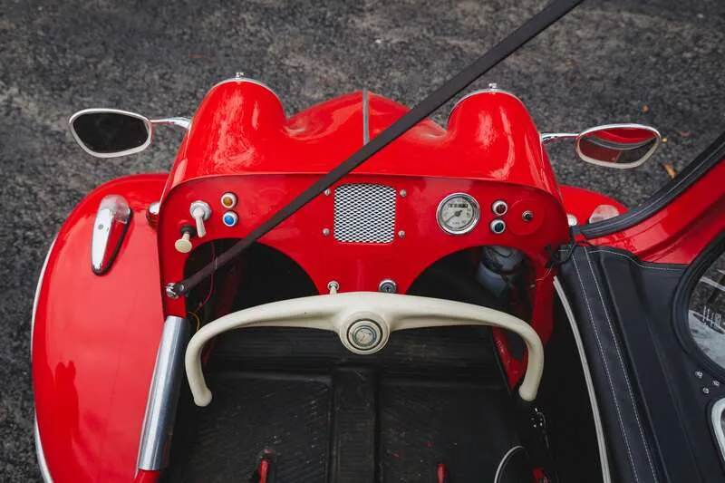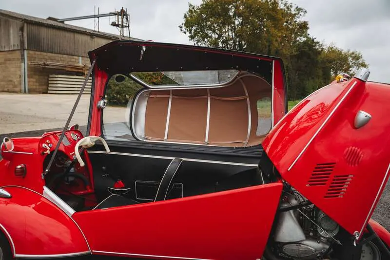 This lot will be auctioned via Iconic Auctioneers, The Classic Sale at the NEC Classic Motor Show 2025 on Sunday the 9th of November, NEC, Birmingham, B40 1NT. In 1955, the improved KR200 was introduced with a larger 191cc engine, revised bodywork, an improved turning circle and floor-mounted accelerator and clutch The tandem seating allowed centralised weight distribution irrespective of occupants, providing the little tricycle with handling characteristics that outclassed its contemporaries Four forward and four reverse gears made for rapid progress in either direction with a top speed of 62mph, if you were brave enough Available in the UK from 1955 onwards, production ceased in 1964 after some 30,000 KR200s had been built First registered in the UK in 1975, this very early 1956 example has been in long term ownership since 2013 and is presented in very well maintained condition Finished in red, with a distinctive bubble canopy and chrome trim, it retains its original design features, including the early handbrake type and early dashboard Powered by a 191cc Fichtel & Sachs two-stroke engine, delivering a unique driving experience with its motorcycle-style sequential gearbox and handlebar yoke steering A true example of the microcar genre, reflecting its aeronautical origins, the KR200 was previously owned by another long time member of the Messerschmitt Owners’ Club, highlighting its cherished status within the community Accompanied by a file documenting its restoration, as well as a dating certificate confirming the features of the early cars, together with some ephemera from past owners’ club concours events