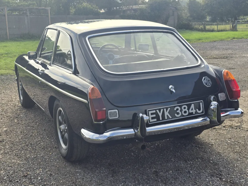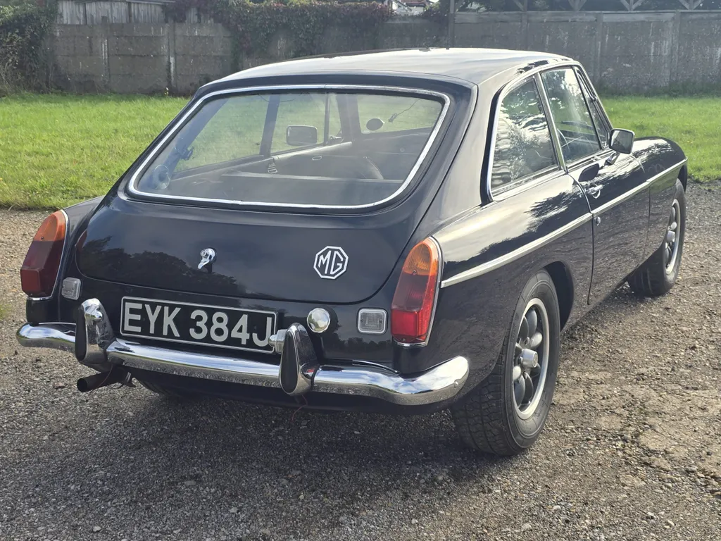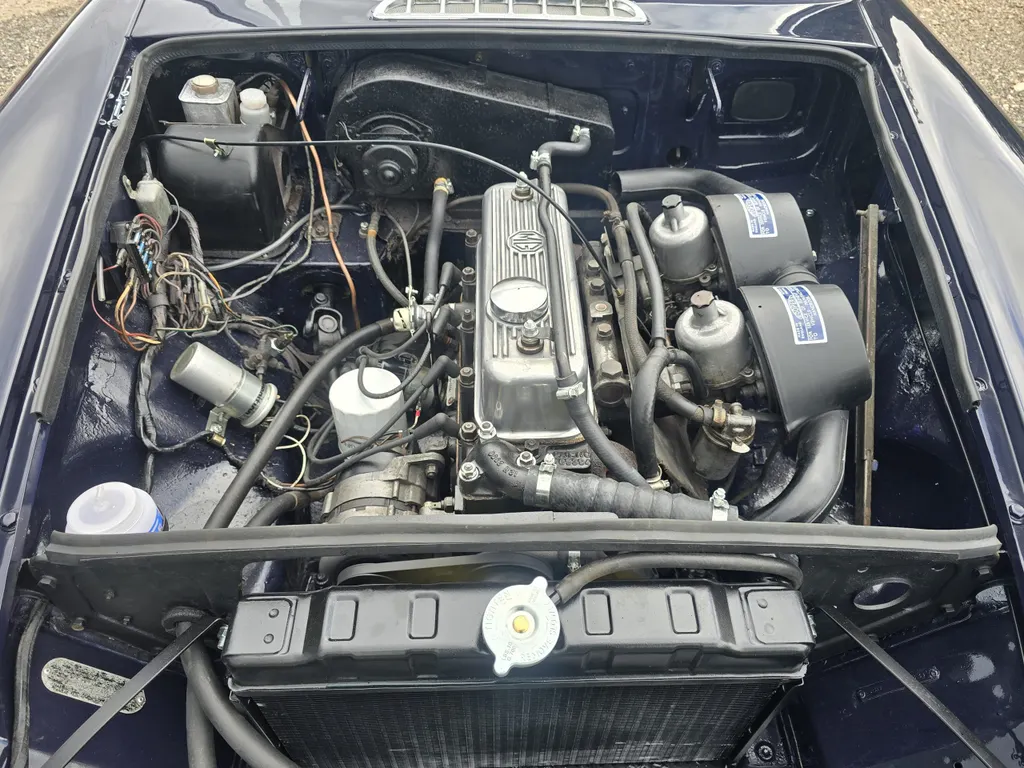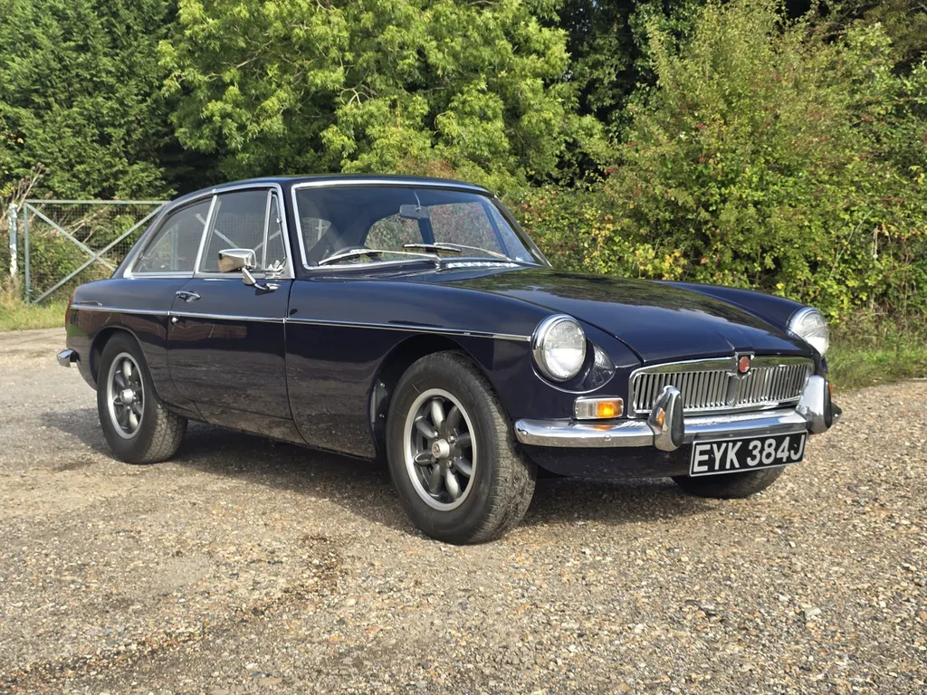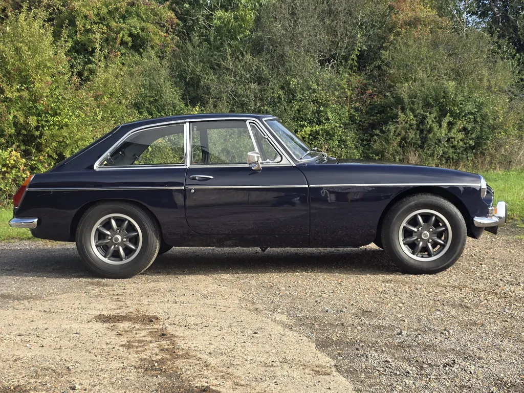 MG B GT, 1972, in stunning midnight blue and fitted with overdrive. Complete bare metal respray just completed; New windscreen and tailgate glass rubbers. Reconditioned engine and clutch; Rebuilt carburettors; Electronic ignition; New radiator and many other new parts. New leather interior – black with red piping; New chrome. New anthracite (light grey) alloy wheels. Restoration completed and ready for MOT and drive away to enjoy!