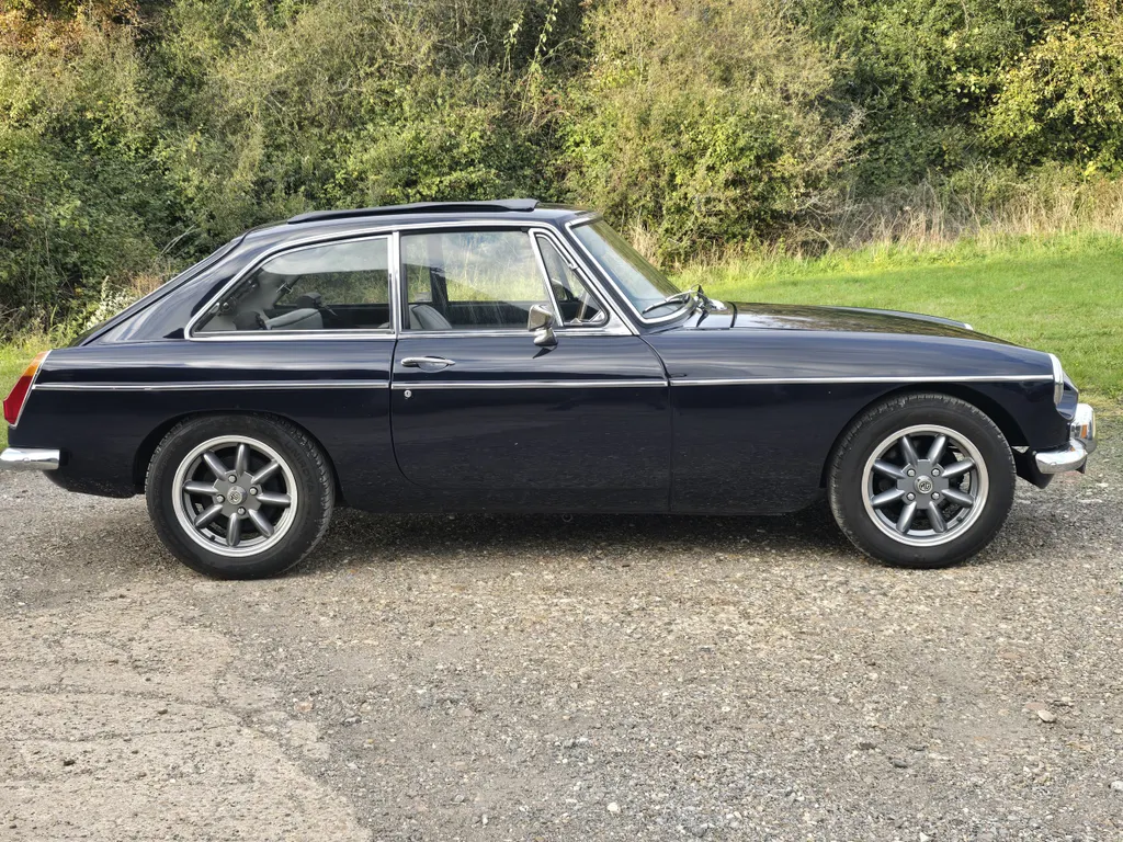 This is an outstanding MG B GT which has undergone a full body rebuild and full respray in Midnight Blue. The rebuild included all new panels – including floor pans, sills, wings, doors, etc. and a professional respray completed in 2022. The car was fitted with a rebuilt engine and gearbox and has only carried out approx. 3k miles since the work was completed! The interior was fitted with grey leather piped in blue and is in beautiful condition. History file dates back 25 years with old MOTs and photos of the rebuild.