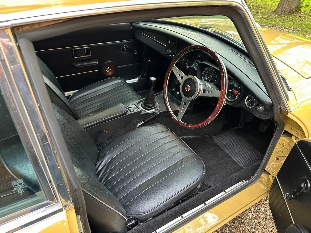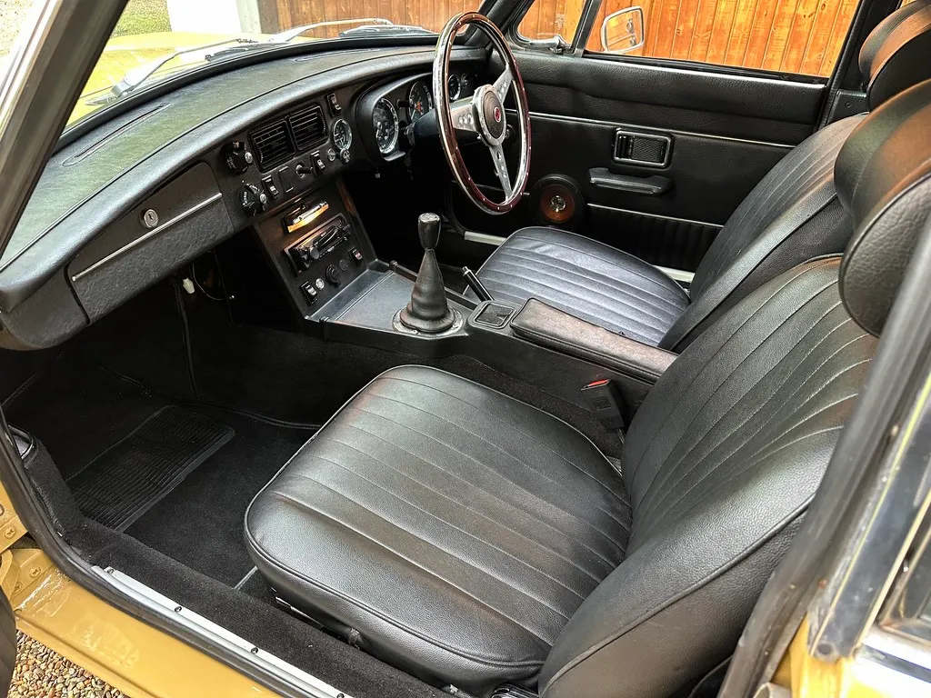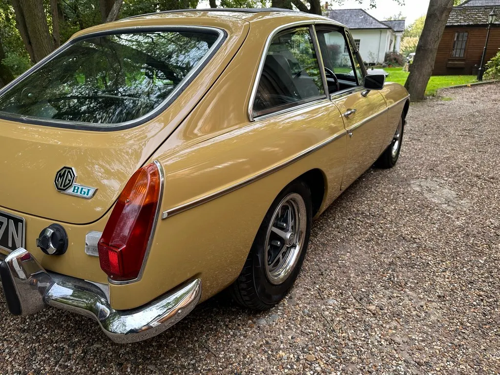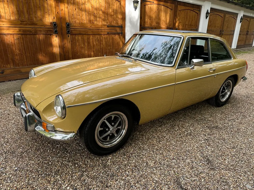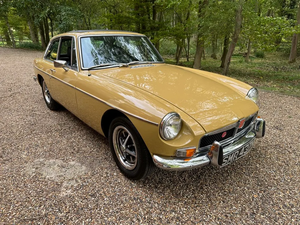 MG BGT, supplied new by Bell’s Garage of Marlborough in 1974, chrome bumpers, overdrive, Rostyle wheels, full length Webasto sunroof, older restored example with good sills and castle rails, bright Harvest Gold coachwork with some imperfections commensurate with age and mileage, nice Black faux leather interior trim, wood rim steering wheel, clean engine compartment housing a reconditioned Ivor Searle unleaded engine supplied and fitted by MGOC in 2016 along with new clutch kit including modified roller release bearing, history file with a plethora of documents including the elusive original passport to service book, service & mechanical invoices both past & present, delightful drive, just arrived, Follow Dealer Web Page Link for more images and all our vehicles.
