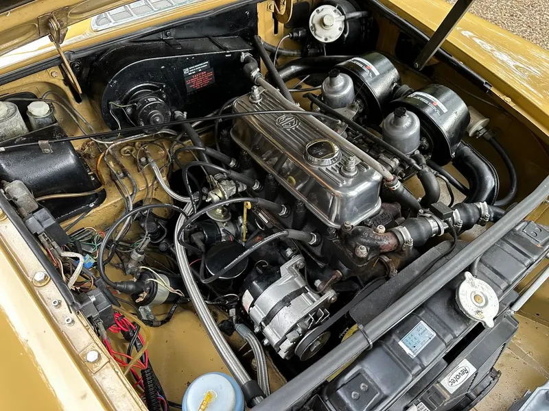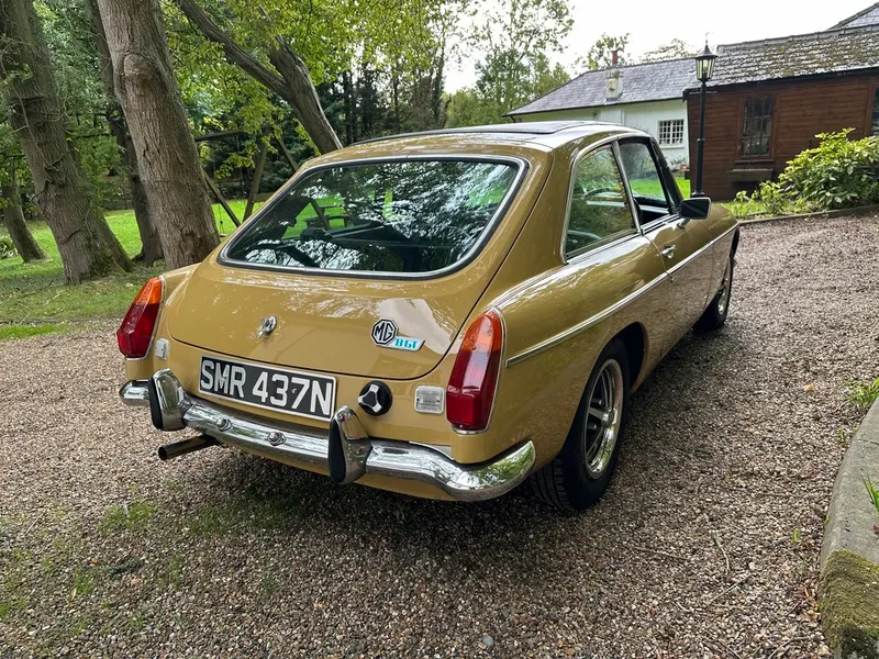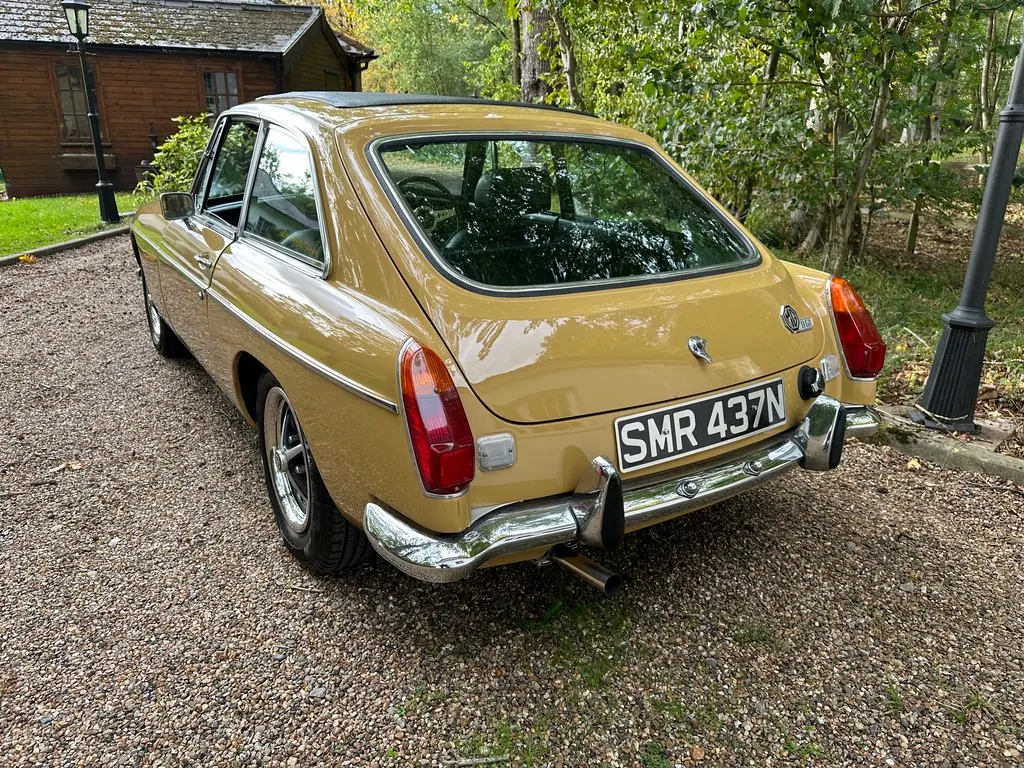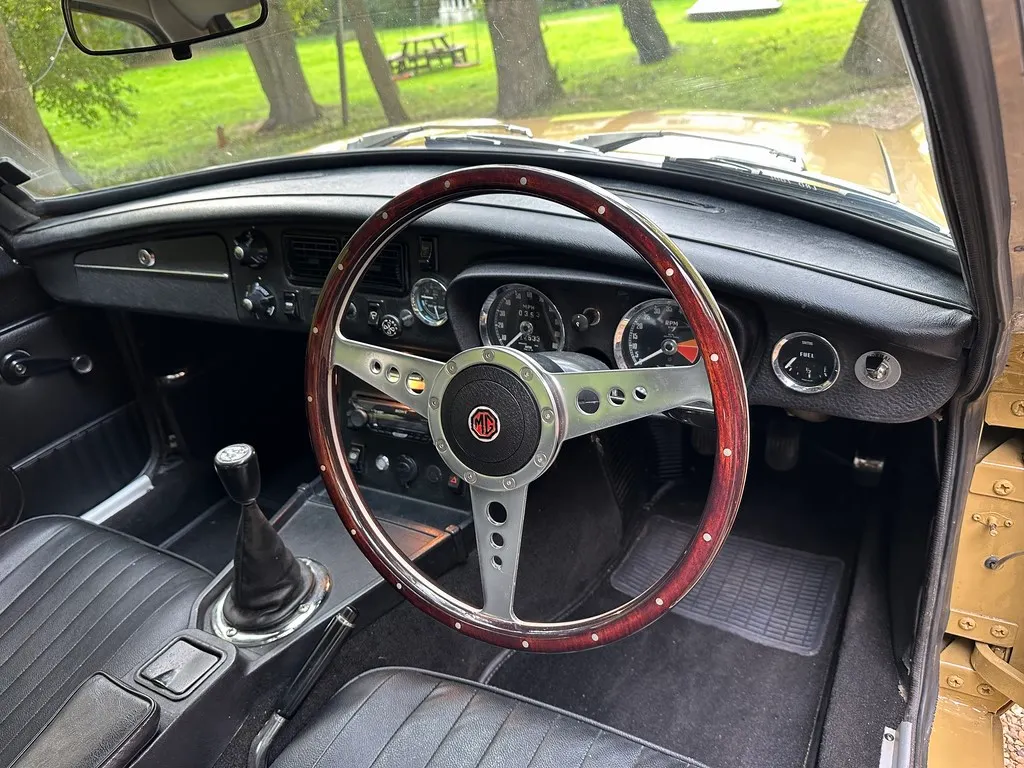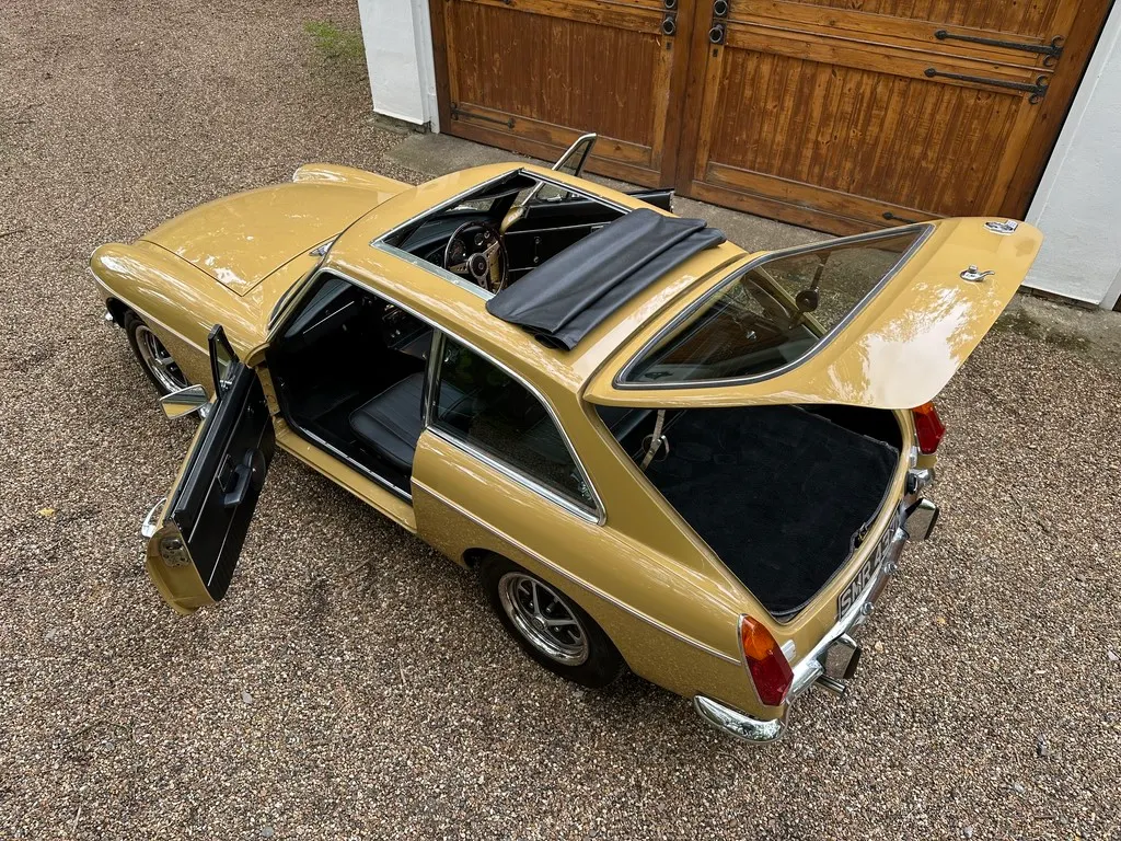 MG BGT, supplied new by Bell’s Garage of Marlborough in 1974, chrome bumpers, overdrive, Rostyle wheels, full length Webasto sunroof, older restored example with good sills and castle rails, bright Harvest Gold coachwork with some imperfections commensurate with age and mileage, nice Black faux leather interior trim, wood rim steering wheel, clean engine compartment housing a reconditioned Ivor Searle unleaded engine supplied and fitted by MGOC in 2016 along with new clutch kit including modified roller release bearing, history file with a plethora of documents including the elusive original passport to service book, service & mechanical invoices both past & present, delightful drive, just arrived, Follow Dealer Web Page Link for more images and all our vehicles.