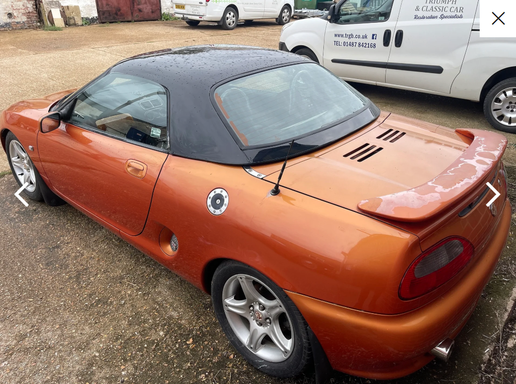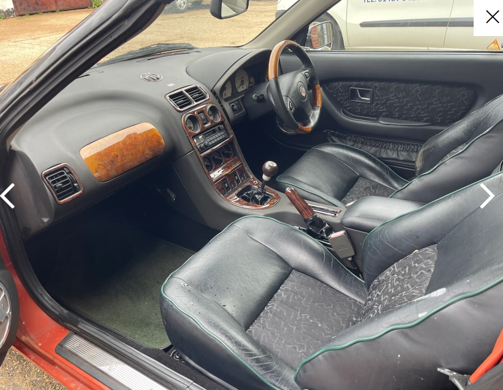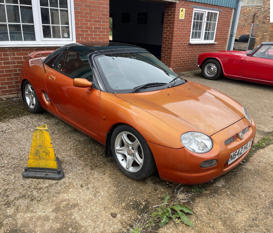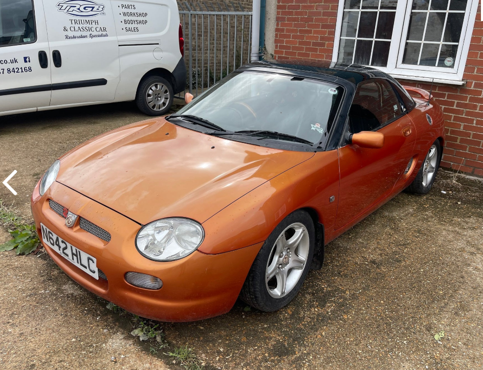 At TRGB Ltd we have a 1996 MGF 1.8 VVC for light recommissioning. Sat dry stored for the last 5 years. We have carried out a pre sales ramp check to advise work required for MOT and re-commission. Work advised includes a new starter battery, main steel coolant pipes that run under the pans, gear linkage repair, basic service, tyres and brake discs if needed. Car rolls! We have had it running and carried out a head gasket sniffer test which it passed. We are happy on point of view to fit a test battery to enable the car to run for viewing purposes. Must be transported away! Fair history with lots of dealer service stamps, 5 owners, two sets of keys and a factory hard top. A good project due to appreciating prices! Genuine mileage of 71977. Ramp inspection welcome at point of sale! Sale price £1495 ONO.