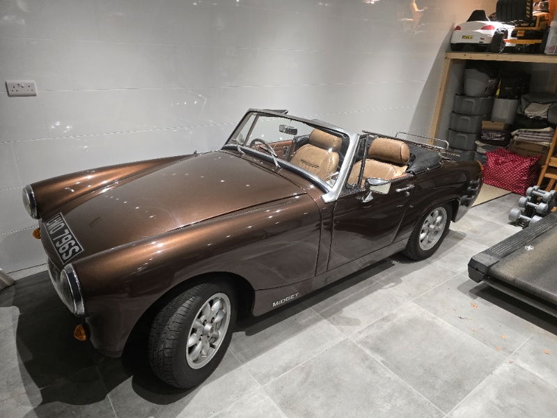 MG Midget 1500cc 1978, MoT and tax exempt. Bought 3 years ago and then it spent nearly a year having bodywork restoration. I have over 100 pictures of the restoration. It’s been de-bumpered and the colour is a Lexus metallic Brown. Drives spot on and been serviced. Had lots of new body panels, all new interior panels and carpets ETC. 70,000 miles. Would advise viewing, based at Barnsley. Price £5750 sorry no offers or p/x, reason for sale too many cars and not enough garage space and this is always kept in the garage. If one of the others sell, then will keep this. It’s a stunning looking little car and took it to a few events in 2024/25 and everyone commented on the colour and how nice it looks. For more info please email me.
