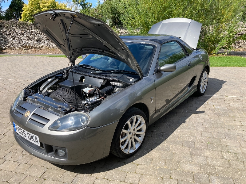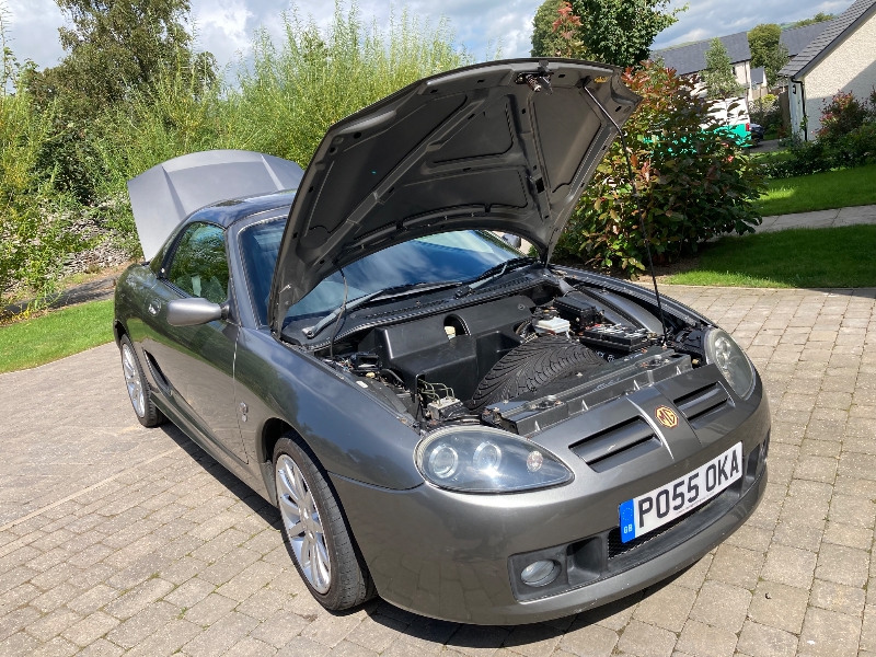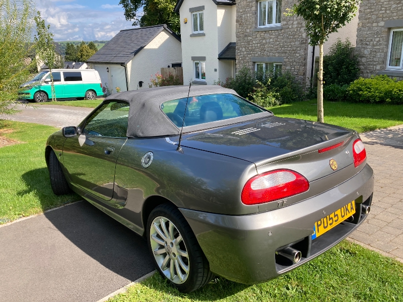 MG TF, petrol 5 speed, registered Sept 2005, full service history, just 3 family owners from new, 10 months MoT. Separate hard top and half tonneau. Professionally undersealed 2011, parking sensors fitted, brand new CD/radio.