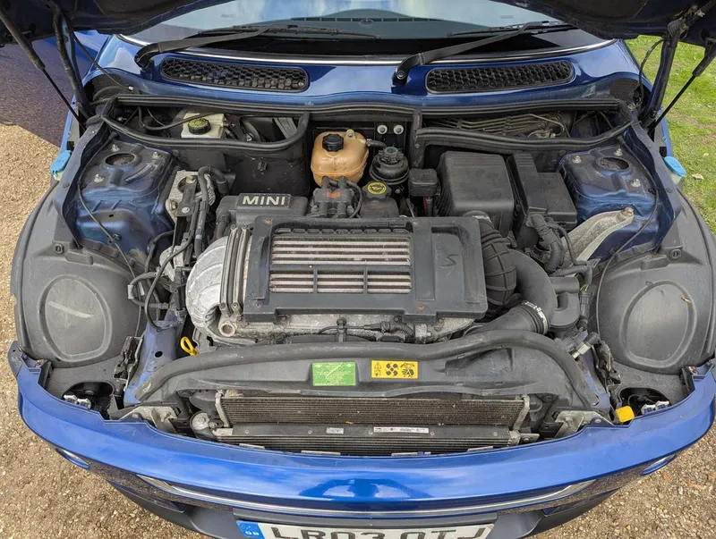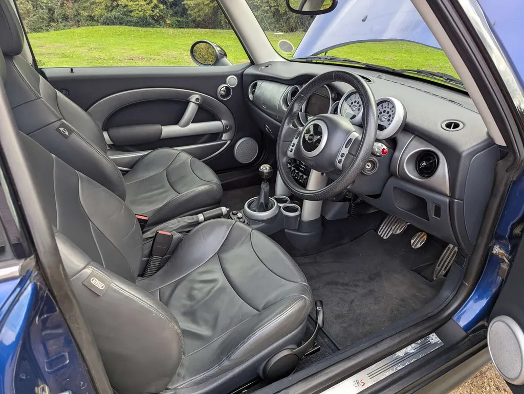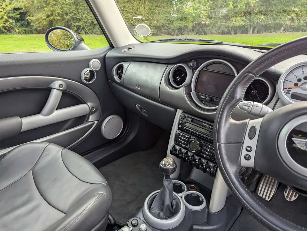 This Mini Cooper S (R53), finished in Indi Blue and equipped with the Chilli Pack, has had only one owner from new and its odometer is showing just 26,230 miles. The car is largely original, and has a high specification including panoramic roof, privacy glass, rear parking sensors, buttons on the steering wheel, sat nav and heated full-leather seats.It was originally purchased from Park West Mini London and first registered on 28th March 2003. The car comes with its current V5C and a service booklet containing four stamps including the PDI, the latest at 23,208 miles 2014. Not specified