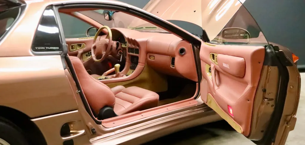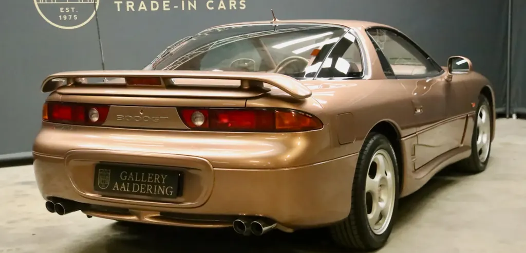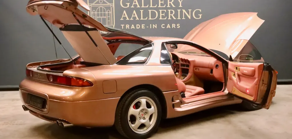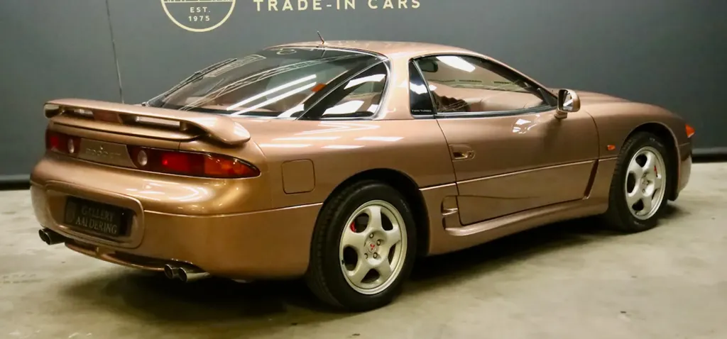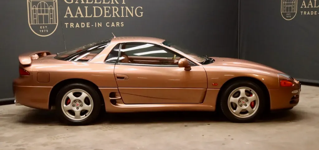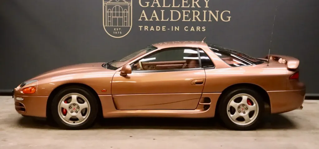 Trade in car. Mitsubishi 3000 GT VR-4 “The state of the art” – 1999 The Mitsubishi 3000 GT VR-4 is regarded as one of the most advanced sports cars of the 1990s. At its introduction, Mitsubishi positioned the model as a technological flagship, equipped with innovations far ahead of its time. Featuring a twin-turbo V6 engine, permanent four-wheel drive, electronically adjustable suspension and even active aerodynamics, the VR-4 offered technology usually reserved for the most exclusive sports cars. It was a revolutionary model that confidently competed with established European brands. This 1999 example has covered less than 63,000 kilometres, fully documented with invoices and registration forms. Originally delivered in Germany in Hamilton Silver with black leather, it was later refinished with great craftsmanship in a unique specification of Brown Copper with Peach Leather. This finish gives the car an individual character, while the quality of execution is clearly visible. The original board folder with booklets is present, and major maintenance was carried out in 2023, ensuring excellent technical condition. A carefully preserved Mitsubishi 3000 GT VR-4, rare due to its low mileage, unique specification and well-documented history. A fine example of a sports car that, in its era, stood as a symbol of innovation and technological progress. Gallery Aaldering is Europe’s leading Classic Cars specialist since 1975! Always 400 Classic and Sportscars in stock, please visit www.gallery-aaldering.com for the current stock list (all offered cars are available in our showroom) and further information. We are located near the German border, 95 km from Düsseldorf and 90 km from Amsterdam. So easy traveling by plane, train, taxi and car. Transport and worldwide shipping can be arranged. No duties/import costs within Europe. We buy, sell and provide consignment sales (selling on behalf of the owner). We can arrange/provide registration/papers for our German (H-Kennzeichen, TÜV, Fahrzeugbrief, Wertgutachten usw.) and Benelux customers. Gallery Aaldering, Arnhemsestraat 47, 6971 AP Brummen, The Netherlands. Tel: 0031-575-564055. Quality, experience and transparency is what sets us apart. We look forward to welcoming you in our showroom.