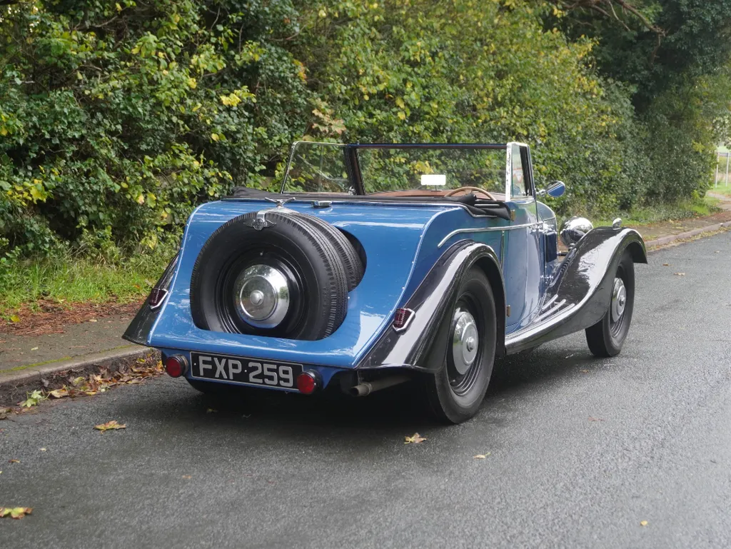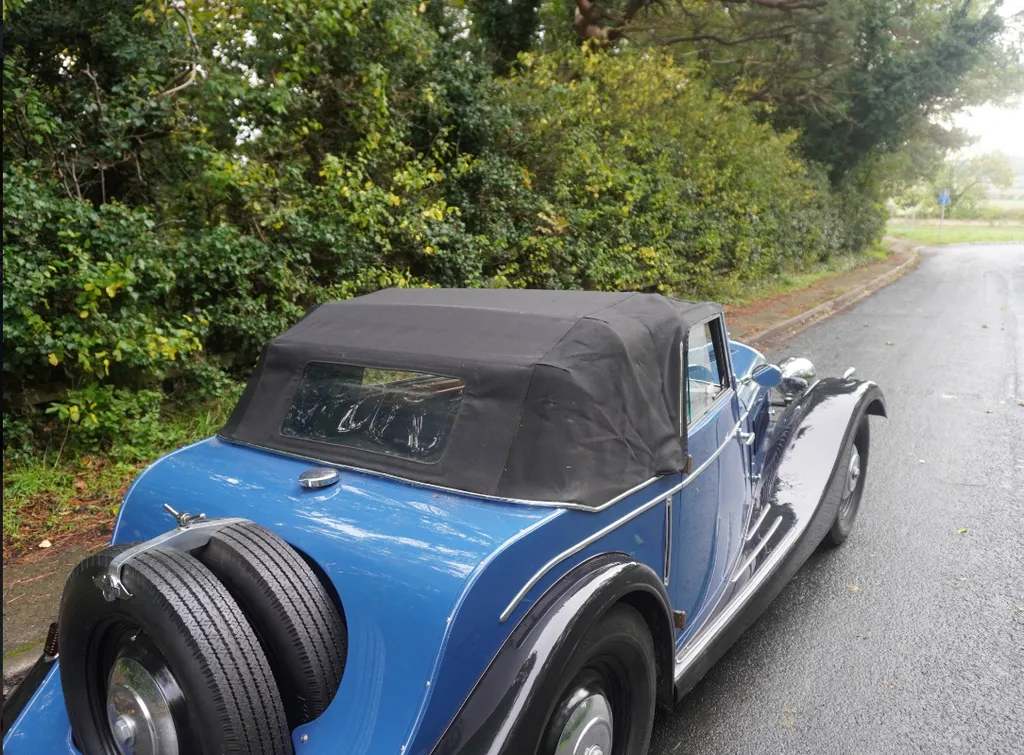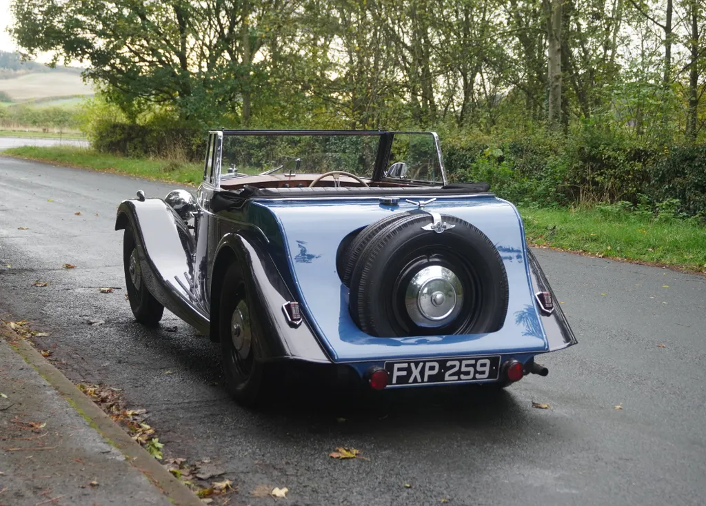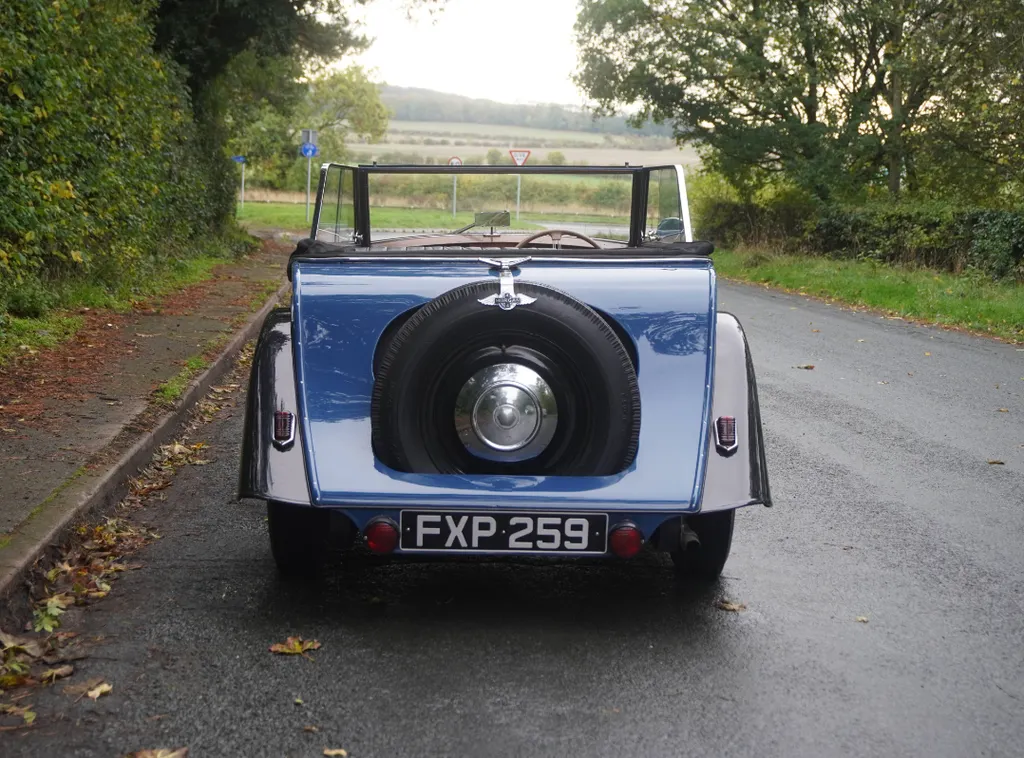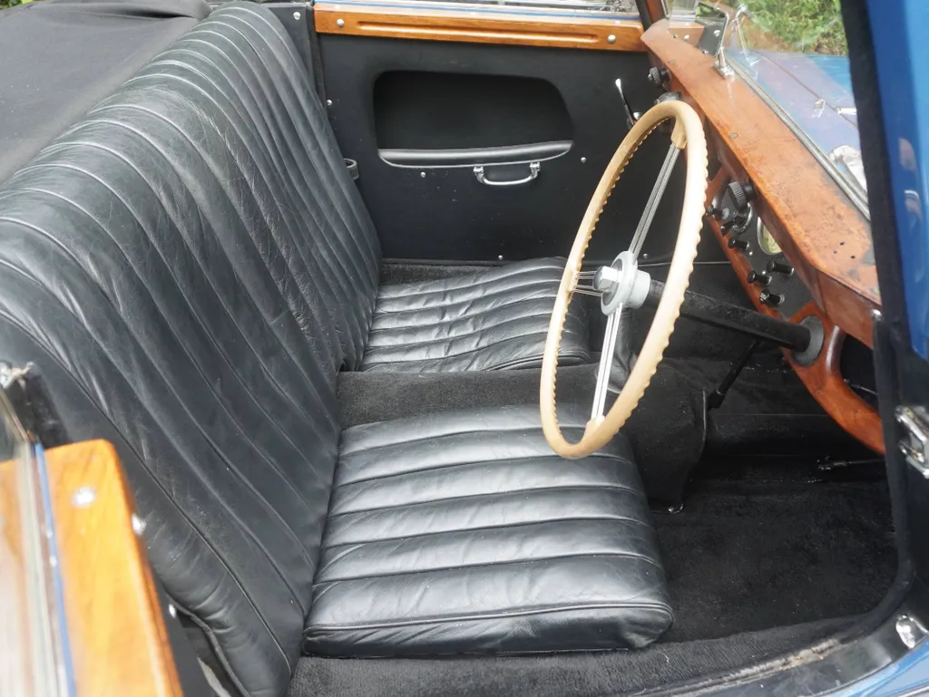 Introduced in 1936, this new Morgan model was the first to have both four cylinders and four wheels. Initially known as the 4-4, the car featured a Coventry Climax engine, but this was replaced in 1938 by a 1267cc Standard Special overhead valve unit mated to a four-speed Moss Gearbox. It soon gained a good reputation for lively performance and excellent handling, with many successes on the track Previously owned by a senior staff member at the Morgan factory, this is an ultra-rare Drophead Coupe, which was restored in the 1990s by marque specialists to concours condition. A matching numbers car, still in its original blue/black colour scheme, it is the fourth production example of only fifteen Standard Special Coupes built before the outbreak of WWII. It was a national concours winner at MOG 2015 and has been carefully preserved in superb condition. First supplied to Morgan main agents J Coryton of South Kensington on June 21st 1939, it seems likely it was kept by them during the war years before being sold to a new owner in London. There is a buff log book detailing previous owners, and a wealth of history going back 86 years!. It also benefits from a VSCC Eligibility form in the Post-Vintage Thoroughbred class. This Morgan comes with two files, detailing its maintenance history, with lots of invoices, correspondence and technical information. On the road, FXP 259 is remarkably positive to drive and quite lively for a pre-war car. As a drophead coupe it benefits from doors with glass windows as is a very useable touring machine. A rare opportunity to acquire a gorgeous pre-war Morgan