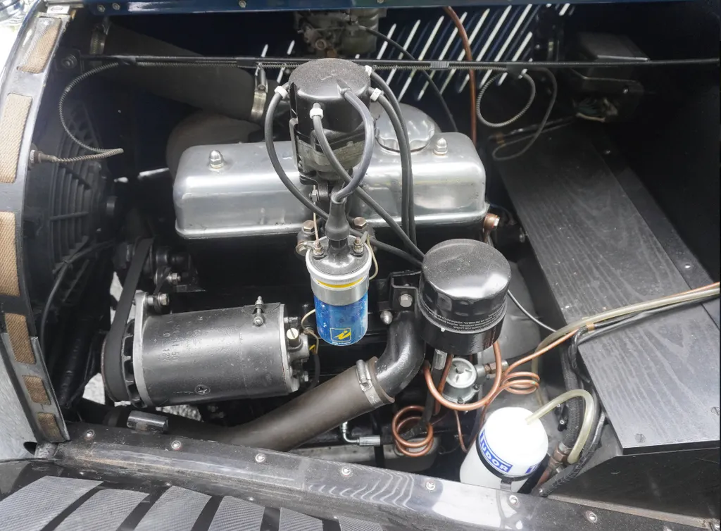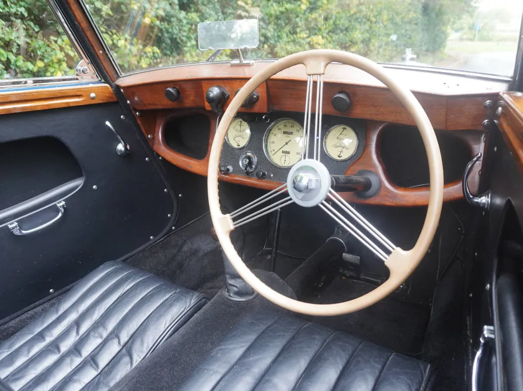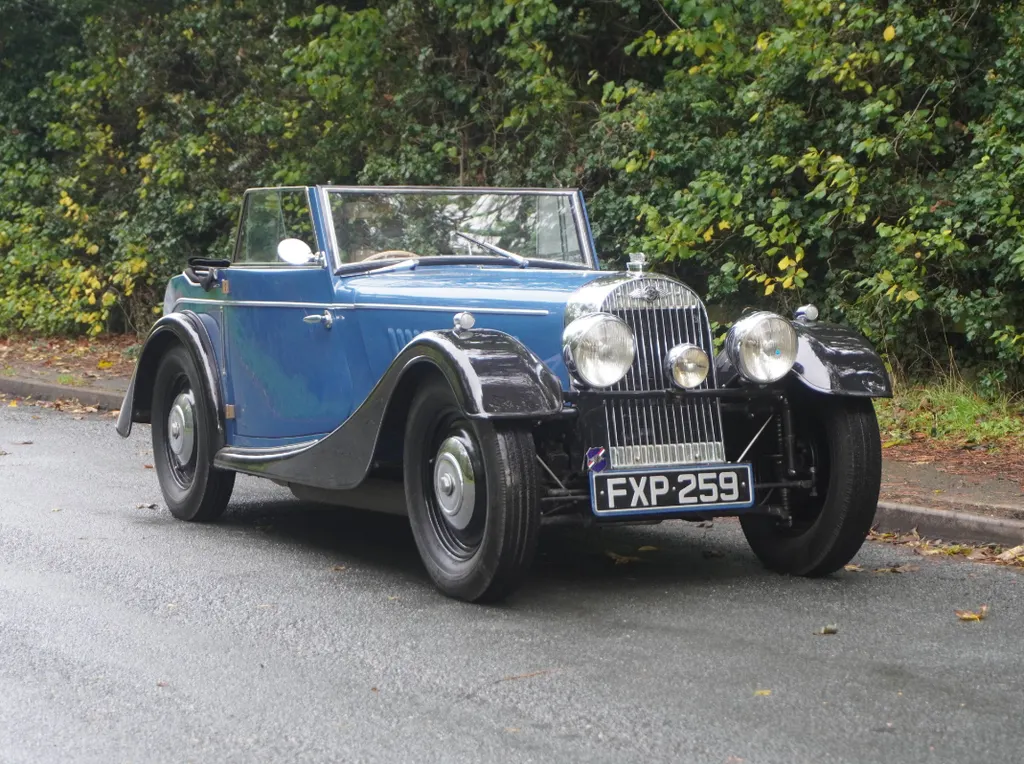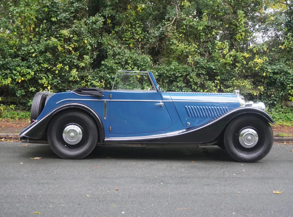 Introduced in 1936, this new Morgan model was the first to have both four cylinders and four wheels. Initially known as the 4-4, the car featured a Coventry Climax engine, but this was replaced in 1938 by a 1267cc Standard Special overhead valve unit mated to a four-speed Moss Gearbox. It soon gained a good reputation for lively performance and excellent handling, with many successes on the track Previously owned by a senior staff member at the Morgan factory, this is an ultra-rare Drophead Coupe, which was restored in the 1990s by marque specialists to concours condition. A matching numbers car, still in its original blue/black colour scheme, it is the fourth production example of only fifteen Standard Special Coupes built before the outbreak of WWII. It was a national concours winner at MOG 2015 and has been carefully preserved in superb condition. First supplied to Morgan main agents J Coryton of South Kensington on June 21st 1939, it seems likely it was kept by them during the war years before being sold to a new owner in London. There is a buff log book detailing previous owners, and a wealth of history going back 86 years!. It also benefits from a VSCC Eligibility form in the Post-Vintage Thoroughbred class. This Morgan comes with two files, detailing its maintenance history, with lots of invoices, correspondence and technical information. On the road, FXP 259 is remarkably positive to drive and quite lively for a pre-war car. As a drophead coupe it benefits from doors with glass windows as is a very useable touring machine. A rare opportunity to acquire a gorgeous pre-war Morgan