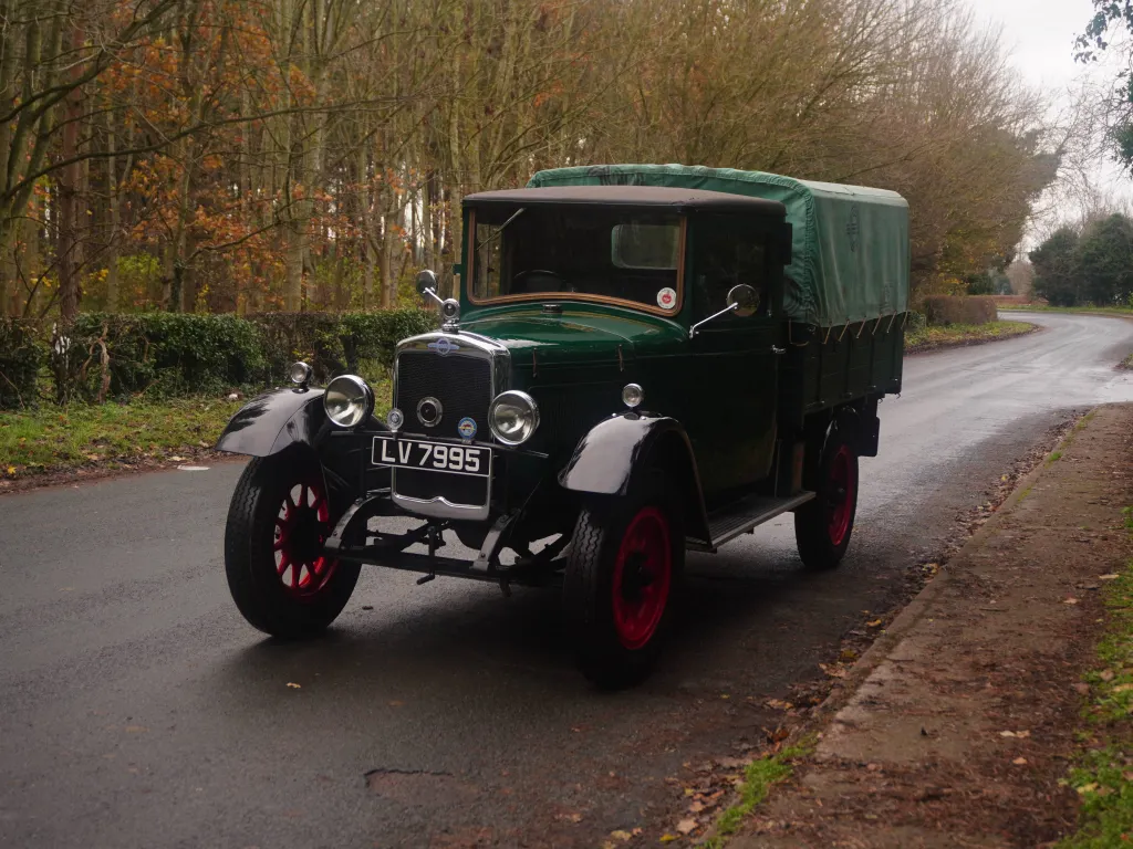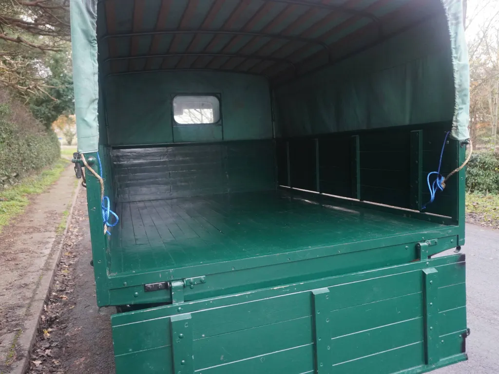 This wonderful 93-year-old Morris Commercial has come to us from one of our long-term customers who rebuilt this rare lorry, a regular attender at local shows and rallies since 2011. The comprehensive rebuild included the construction of a brand new dropside body with tilt cover. The woodwork in the cab is particularly well done, and the paintwork is lovely. Morris Motors had bought a factory in 1923 previously belonging to E G Wrigley Ltd, component suppliers to Morris, and this allowed the company to expand into the heavier commercial vehicle market. Morris Commercial Cars Ltd was formed, and this new division introduced its first model, the one-ton T-type, in May 1924. Like the Morris van range, the T-type was based mainly on passenger car components, including the Morris Oxford's Hotchkiss-type 13.9hp four-cylinder sidevalve engine. This engine of 1802cc capacity had its origins in the original bullnose Morris of 1913. Brakes were fitted to the rear wheels only, regarded as adequate for the vehicle's typical speed of 30mph. The T-Type could be ordered either with Morris's own coachwork or in rolling chassis form for independent coachbuilders. The earliest T-types had the name ‘Morris' cast into the radiator shell. This later model has the larger radiator with chrome-plated shell, introduced in 1931, when it became known as the ‘T2'. A fascinating fitted accessory in the cab is the ‘Servis Recorder' - a mechanical tachograph-like device fitted to many lorries in the 1930s. Introduced as a direct response to the 1930 Road Traffic Act, the unit recorded driving hours, speed and distance travelled. Initially, driver's hours were limited to 11 hours driving in a 24hr period, and this unit allowed operators to demonstrate compliance. This is a charming old lorry which would be ideal for use as a promotional vehicle or just used for local shows and rallies.