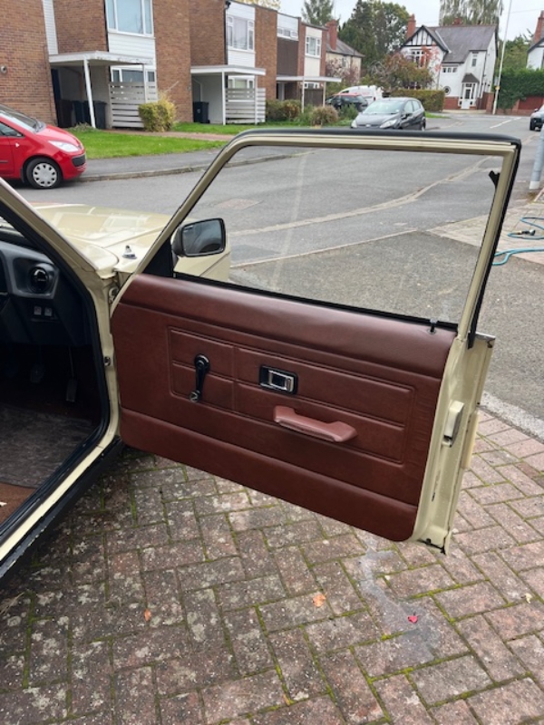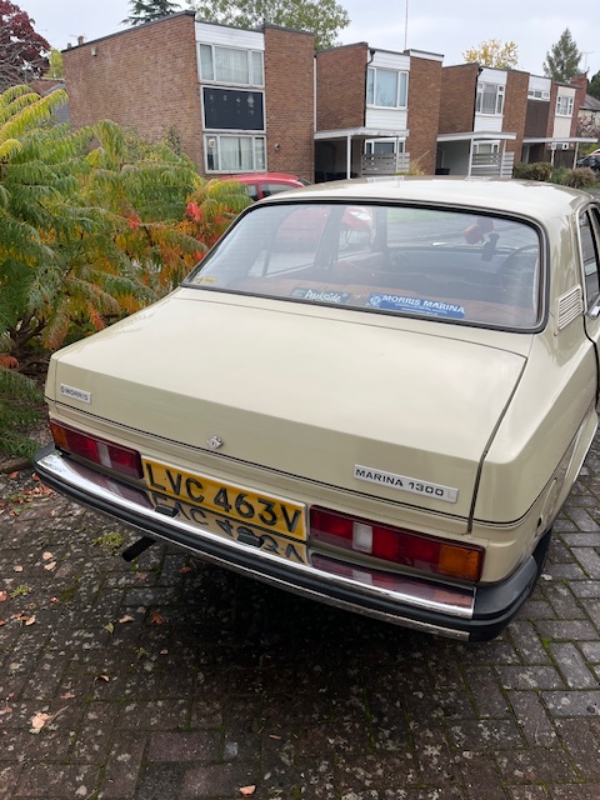 1980 1.3 Morris Marina, in Champagne with Paprika interior. 31,701 miles with 3 owners from new, but I am only the second owner to drive it on the road. Dry stored from 1992-2022 when I purchased it. Originally sold in the Coventry area, lots of documents come with the car. In original condition, has never been restored. 5 new tyres, wheels have been refurbished. New fan belt, front calipers, rear shoes and cylinders, fuel pipe, front tie bar brushes, battery. Rubber seals around front door replaced. Underside and wheel arches have been Waxoyled. Alternator has been refurbished. Replaced fuel pump, and rear Spax adjustable shock absorbers fitted to rear. Interior is in great condition, save for a small tear to the rear seat. Used weekly drives very well. The less good bits: A few scabs to paint work, especially the top of the front wings. Fuel sender unit is stuck, but I have the replacement. Gear mounting rubber could do with replacing. Solid, honest car with no scare stories. New classic purchase forces sale. £4,300.