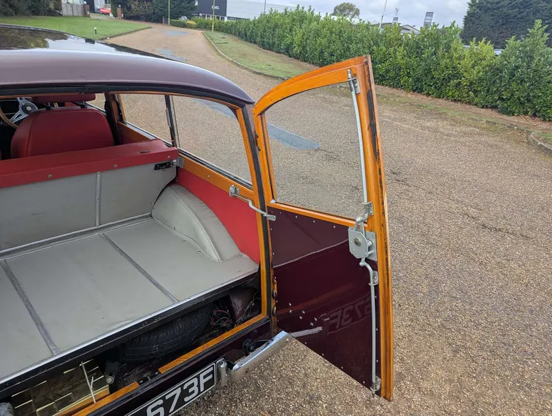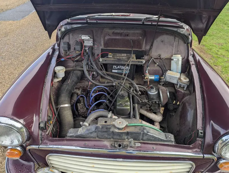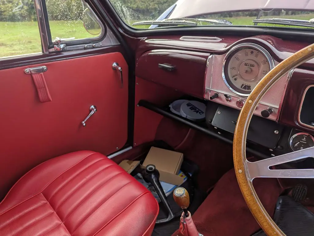 This maroon 1275cc Morris Minor Traveller was comprehensively rebuilt in 2014 at a cost of £16,000, and features a five-speed manual gearbox conversion with front disc brakes. Owned by a local resident since 2015, the car has been MoT tested every year since its restoration, and it currently has an advisory-free MoT which is valid to 8th November 2026.The Minor was first registered on 16th April 1968, and its odometer indicates 14,677 miles. Paperwork comprises the V5C (which shows four previous owners) plus a collection of MoT certificates, and a copy of the receipt for the restoration work. The car comes with spare keys, and the original steering wheel is also present. Not specified