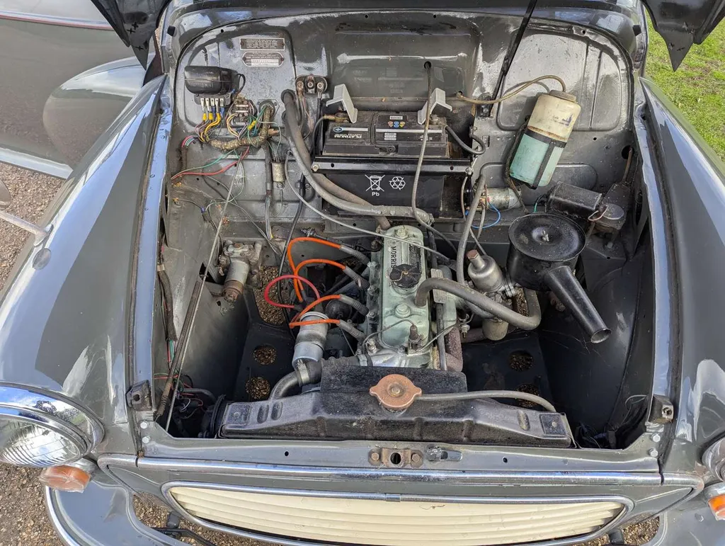 948cc. This grey Morris Minor Traveller, with red interior, was first registered on 10th January 1961. The vendor tells us it received new brake cylinders in 2024, and he believes that some restorative work was carried out around 2012. The car comes with a spare radiator, starter motor, tax discs, Haynes workshop manual and spare keys. The V5C is in the vendor's name and indicates 6 previous owners. Not specified