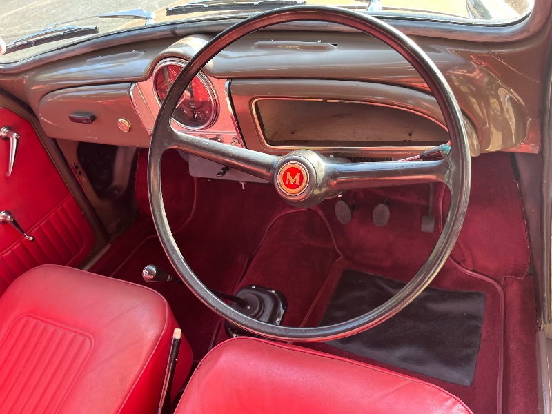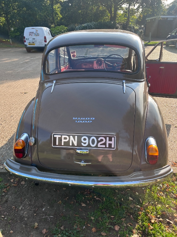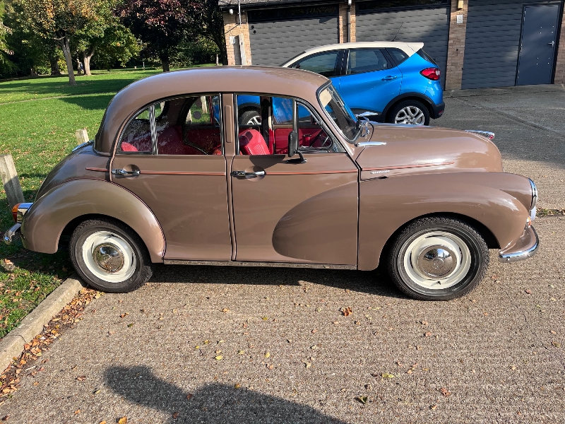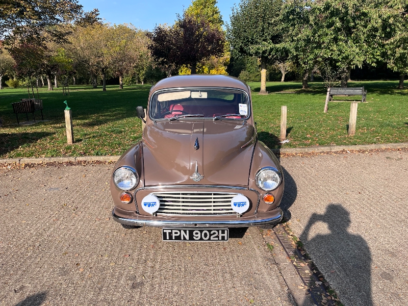 Morris Minor 1969. 90,281 miles. RHD. Brown. Manual. Front disc conversion, added spotlights.