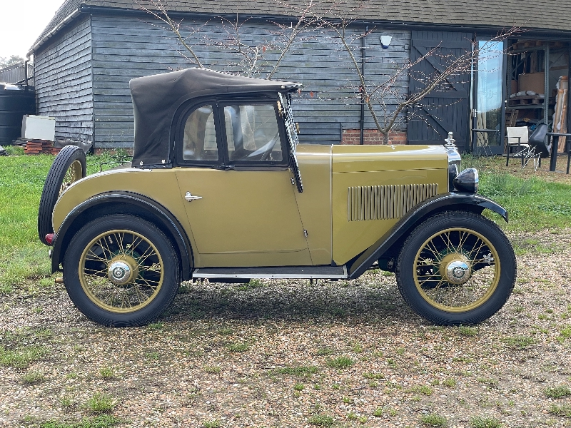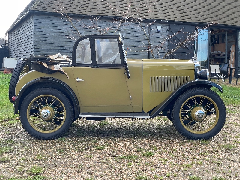 1933 Morris Minor Two Seater Tourer. A rarely available Two Seater Tourer in a stunning colour combination. Starts on the button with good oil pressure. Hydraulic brake converted ('32 Minors were fitted back to the old cable braking system and this has a later, so I understand, Minor hydraulic system. It was probably done in the 50's/60's when parts were readily available for them. It looks original, but I was told the '32/'33 Minors didn't have them originally.) Previous owner for 50 years. Suitcase full of books, original Buff log book and trophies. Original sidevalve engine included - this was removed decades ago, but adds to the car's originality - it is still fitted with the exact same sidevalve engine, which is period and vehicle correct. New front cylinders and flex lines. New stainless exhaust. New water inlet gasket. Coolant system flushed with new core plugs. Absolutely no rust and dry stored for the last 55 years. The hood and side windows are good, X5 tyres are good and the leather bench seat is beautifully patinated and comfortable. Bodywork is very good for 92 years of age, front wings have some paint flaking and marks commensurate with age. I’ve still some minor jobs to do, such as bleed the brakes and tune the carb, but the weather is awful at present so I haven't been able to pull it out. If someone wanted to take it as it is, I will of course reduce the price accordingly. Viewing welcome in East Sussex. Please only view if you are serious buyer who knows the value of these cars. The asking price is very realistic, though I am open to very close offers. Transport can be arranged/a contact number provided for a very good company.