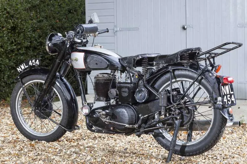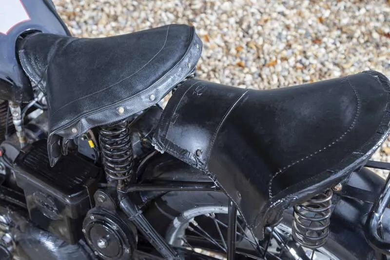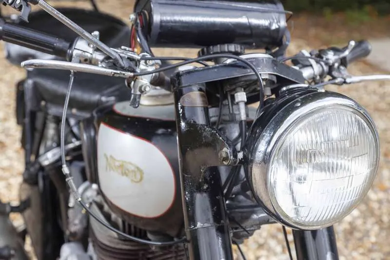 This lot will be auctioned via Iconic Auctioneers, The Iconic Motorcycle Sale at the NEC Classic Motor Show 2025 on Sunday the 9th of November, NEC, Birmingham, B40 1NT. The Norton 16H is one of the most enduring models in Norton’s long history, renowned for its reliability, simplicity and rugged performance. Originally introduced in the 1920s and produced in large numbers for the military during the Second World War, the 16H continued in civilian production into the early 1950s. Powered by a 490cc side-valve single producing around 14bhp, the model delivered steady, tractable power through a 4-speed gearbox, qualities that made it a dependable choice for both military and post-war riders alike By 1949, the model benefited from the introduction of Norton’s new Roadholder front forks, greatly improving ride quality and handling over the earlier girder-equipped machines. This bike has been owned and enjoyed by its enthusiastic owner since 1999, so the bike has been in the vendors collection for some 26 years. Registered on the 15/03/1949 to Clarks of Oxford Ltd and then purchased by a William Sirman of Little Tew, Oxfordshire. It has only had four owners in its life, and is mostly original and appears unrestored. The engine was re-sleeved, with a new piston around 12 years ago Extensively toured (mostly in mid Wales) by our vendor who finds it a little heavy these days - he describes it as an easy starting and well running bike. Though MOT-exempt, he still kept it MOT'd and the most recent one expired in November 2023. During his ownership, the engine oil has been changed every 500 miles with Morris SAE30 The history file contains the current V5C, old logbooks (including the original 'buff' logbook), old MOTs, Tax Discs, invoices, and a photocopy of the Maintenance and Instruction book Also supplied with a toolbox with tools, a larger bag with tools and a fire extinguisher A valuable transferable registration number A venerable 16H with a patina reflecting the vendors use and enjoyment of the bike over the years