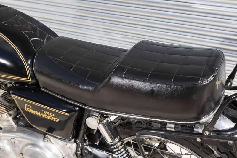 This lot will be auctioned via Iconic Auctioneers, The Iconic Motorcycle Sale at the NEC Classic Motor Show 2025 on Sunday the 9th of November, NEC, Birmingham, B40 1NT. Produced from 1967 to 1977, initially featuring a 745cc engine that was a nominal 750cc Motorcycle News 'Bike of the Year' for five consecutive years Known for its innovative Isolastic frame, which used rubber mountings to isolate the engine, gearbox, and swing-arm from the frame, the Commando was revolutionary in its handling and ride quality, effectively reducing the vibration typical of classic British bikes This is a clean, matching numbers bike that will need some re-commissioning and the usual checks as it hasn't been ridden since 2023 Current V5C and classed as Historic. Supplied with a large file of paperwork including old V5Cs, MOTs, invoices, club magazines etc.
