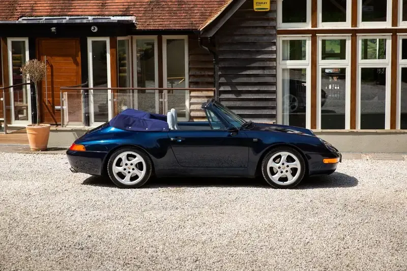 This lot will be auctioned via Iconic Auctioneers, Online Auction - 13th November on Thursday the 13th of November. Background:The 993-generation 911, introduced in 1994, represented the final evolution of Porsche’s air-cooled era and is widely regarded as one of the marque’s most beautifully engineered and timeless models. Retaining the traditional flat-six configuration, it benefited from multi-link rear suspension and refined aerodynamics, offering both improved ride quality and stability. For many enthusiasts, the 993 remains the perfect blend of classic design and modern usability, marking the end of an iconic chapter in Porsche’s history. The Car:This C16-code, UK-market 911 Carrera Cabriolet is presented in the striking combination of Ocean Blue metallic with a colour-coded dark blue convertible hood, over a contrasting Marble Grey leather-trimmed interior and matching dark blue floormats. It has been comprehensively restored inside and out to an excellent standard and has been maintained, garaged and used sparingly. Power comes from the naturally aspirated 3.6-litre VarioRam air-cooled flat-six, producing 282 hp and driving the rear wheels through a four-speed Tiptronic S automatic transmission with steering wheel shift buttons. It rides on 18-inch ‘Turbo Twist’ alloy wheels with coloured Porsche-crested centre caps and black brake callipers, fitted with new Michelin Pilot Sport 4 tyres. The factory specification includes air conditioning, lowered suspension, an on-board computer, immobiliser and electrically adjustable seats. Upgrades include xenon headlights and a Blaupunkt DAB stereo head unit. The car is offered with its original owner’s book pack, a comprehensive service history, Porsche Heritage Certificate, original toolkit, spare wheel, two keys and master immobiliser fob. Location: HampshireSeller: PrivatePhotography: Professional