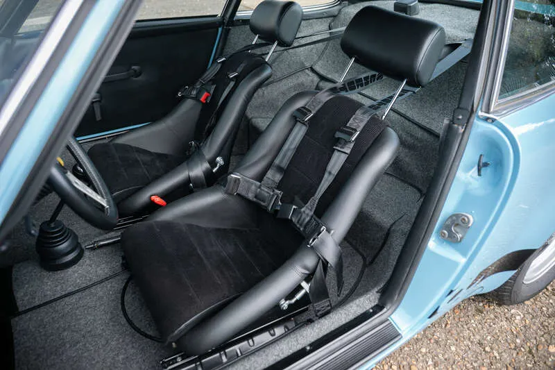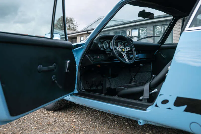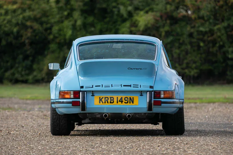 This lot will be auctioned via Iconic Auctioneers, The Iconic Sale at the NEC Classic Motor Show 2025 on Saturday the 8th of November, NEC, Birmingham, B40 1NT. Porsche revived the Carrera name for its luxuriously equipped, top of the range 911 in 1973. Designated Carrera RS (RennSport), the newcomer was intended as a limited edition product for 'Group 4' GT racing, a class that required a minimum of 500 built. However, the resulting demand for this fabulous car proved so great that the production run was later extended by 1,300 or so units. Based on a lightened 911S platform, the Carrera RS featured revised suspension and wider rear wheels (beneath flared arches) for improved handling, while the 2.7-litre, fuel-injected, air-cooled six-cylinder engine’s 210bhp boosted top speed to around 150mph. Not merely a styling gimmick, the Carrera’s trademark 'duck’s tail' spoiler made a vital contribution to high speed stability, a virtue of increasing importance as power outputs continued to rise. Rare and highly sought after, original examples of the 1973 RS are now very expensive, a state of affairs that has inspired many a Porsche enthusiast to create replicas of what was one of the defining sports cars of its era. Originally delivered new to California in Chocolate Brown with a tan interior, this US-specification, H-series 911S was supplied through Sierra Porsche. In around 2010, the car underwent a full restoration and was built into a faithful 2.7 RS Touring replica. Purchased by our vendor in 2020, the history file includes an inspection report from Steinbacher dated 2018 confirming the car to be in excellent order. In the spring of 2016, Blue Palm Service AG of Switzerland carried out a comprehensive rebuild of both the engine and gearbox ensuring that the Porsche performs as it should. Now finished in Gulf Blue (one of the less common 1973 RS colours) with black RS graphics, the paintwork remains in good condition and the car is equipped with the correctly shaped fibreglass ducktail spoiler. The interior features the appropriate half-corduroy and half-leather seats along with fresh door cards and carpets replaced by Hall and Hall in 2024. This 911 is UK registered having also spent time in Switzerland and is reported to run and drive very well. It is offered from a private collection where it has been properly maintained and enjoyed. Available via separate negotiation post sale is a 3-litre SC engine which the vendor had considered using for a race car conversion although this project was never undertaken. If an original 1973 2.7 RS is a tad outside the budget, this beautifully presented replica must surely be the next best thing.
