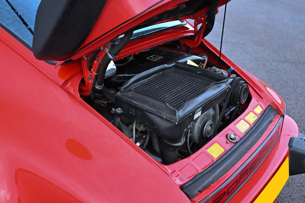 This stunning 1981 Porsche 911/930 3.3 Litre Turbo was purchased by the current owner in May 2016 from Stratstone Ferrari, Wilmslow when it had covered 63,500 miles. Prior to our vendors purchase, Stratstone had taken the car to marque specialists, Tony Greatorex, in Cheshire who removed the engine and gearbox and supplied a new clutch assembly, remove the timing chain housings and fitting all new seals, gaskets and cam lock nuts, turbo charger feed pipes, new engine breather hose, new turbo inlet hoses and intercooler seals. They also supplied a new right hand stainless heat exchanger, all new oil pipes, changed the engine oil and filter, fitted two new hot air control valves, renewed the rear roll bar bushes and new drop links, fitted a new steering column top bearing and checked through the braking system. Whilst in his ownership, our vendor has covered less than 10,000 miles in the car and has kept it regularly serviced and maintained by Stratstone Ferrari Service. This loverly example is presented in Guards Red with a black leather interior and is supplied with a V5 registration document, a new MoT test certificate and a file containing its service book and other paperwork. This head tuning, iconic example is surely a great investment with terrific performance. Consigned by John Tomlin.