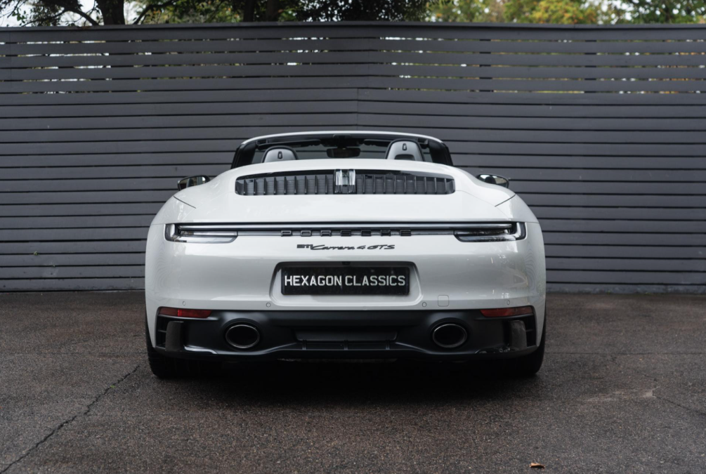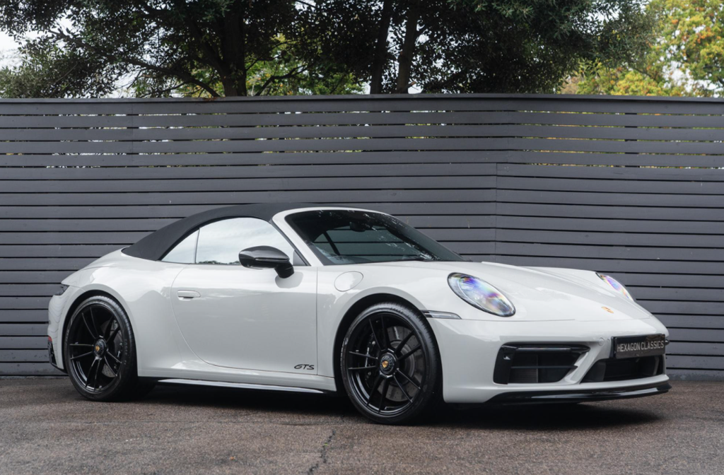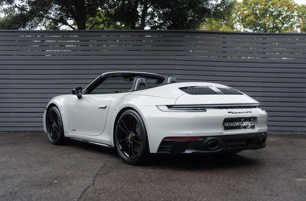 Hexagon Classics are delighted to offer this exceptional Porsche 911 Carrera 4 GTS, finished in a stunning specification that perfectly encapsulates the spirit of the modern 911: timeless, potent, and meticulously engineered. SPECIFICATION INCLUDES:- 3.0-LITRE TWIN-TURBOCHARGED FLAT-SIX (480 PS), 8-SPEED PDK TRANSMISSION, ALCANTARA AND LEATHER INTERIOR, ADAPTIVE SPORTS SEATS PLUS WITH FRONT SEAT HEATING, DYNAMIC ENGINE MOUNTS, PORSCHE COMMUNICATION MANAGEMENT (PCM) WITH NAVIGATION, MIRRORLINK, PORSCHE ACTIVE SUSPENSION MANAGEMENT (PASM), SPORT CHRONO PACKAGE, MULTI FUNCTION STEERING WHEEL, LANE DEPARTURE WARNING, KEYLESS GO, GTS SPORTS EXHAUST SYSTEM WITH BLACK TAILPIPES, 20”/21” CENTRE-LOCK ALLOY WHEELS, POWER FOLDING MIRRORS, LED MATRIX HEADLIGHTS, SIDE VIEW & REVERSING CAMERA AND PARKING ASSIST. Powered by Porsche’s acclaimed 3.0-litre twin-turbocharged flat-six engine, delivering 480 PS through the PDK dual-clutch transmission, the Carrera 4 GTS achieves 0-62 mph in just 3.4 seconds and has a top speed of 191 mph. With its enhanced sports suspension, dynamic engine mounts, and the lowered PASM chassis, this GTS offers a sharper, more communicative driving experience that bridges the gap between the Carrera S and the GT3. This Carrera 4 GTS Cabriolet, has been beautifully maintained and presents in immaculate condition throughout. The exterior finish and interior specification reflect Porsche’s mastery of detail and design: a harmonious blend of performance, luxury, and daily usability. Delivered new in November 2021 it has a full Porsche service record. As with all Hexagon Classics cars, this Porsche has been carefully sourced, meticulously prepared, and is supplied with a comprehensive warranty. A truly remarkable 911 that delivers every ounce of the driving pleasure Porsche is famed for. Available to view now at our London showrooms.