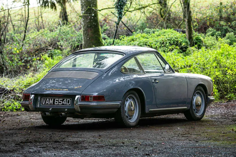 This lot will be auctioned via Iconic Auctioneers, The Iconic Sale at Race Retro 2026 - Collectors Cars on Saturday the 21st of February, Stoneleigh Park, Stoneleigh Rd, Coventry, CV8 2LG. Please note this lot is subject to vendor approval and may change. Essentially a 911 fitted with the well-established 1,600cc 356-type flat-four, the 912 was a very capable modern sports car in period, but was importantly more affordable, selling at near-356 prices. The 912 produced 90bhp, some 40 horsepower less than the 911's six-cylinder engine, but this deficit was offset by significantly reduced weight, resulting in a better-balanced car with greatly improved road manners and better economy, the combination of the four-cylinder engine and the 'slippery' 911 shape offering over 30mpg. This new model had all the looks and style of the 911 whilst sharing its gearbox, monocoque steel chassis, independent front torsion bar, trailing arm rear suspension and all-round disc brakes. Despite offering slightly less power, the agile 912 had a respectable top speed of 119mph, while the UK list price of £2,467 undercut the 911 by around 16%. A little over 30,000 examples were produced at Karmann's works (Porsche's factory was fully occupied with the 911) between 1965 and 1968, and today the 912 is a relative rarity when compared with its better-known sibling. Despite the fact that Steve McQueen's 1971 film 'Le Mans' is full of drama, disaster and despair, it's most commonly remembered for the opening sequence with McQueen quietly making his way through Northern France in his 1970 'D' Series 911 S. The Slate Grey car looks entirely at home on a misty early morning as the Porsche gently negotiates the sweeping, tree-lined curves of the D35 between Brulon and Cheville with no soundtrack apart from a little Michael Legrand flute music and an occasional 'gruffle' from the flat-six and, with the benefit of nostalgia, Slate Grey is now the ‘coolest’ colour for early 911/912s. This delightful 912 is indeed finished in its original colour of Slate Grey ( 6601), however, it has benefitted from a recent glass out, bare metal, paint refresh. The bodywork is remarkably straight with the original panels displaying neat shut lines, a theme that continues underneath with well presented original panels and only a minor repair to the battery box evident. This is a well-travelled Porsche having been delivered new to Amersfoort in the Netherlands, shortly afterwards ending up in the US before being imported to the UK in the early 2010s where it was later restored by Williams Crawford. It's a matching numbers car and is in its original configuration with the three-dial brushed alloy dash, wood rim wheel, spot lamps and the desirable five-speed transmission. It presents very well whilst still retaining a lovely patina with original brightwork, lenses and much of the interior (the headlining has been renewed). The original engine has been developed and taken out to 1720 cc thanks to new barrels and pistons. Weber carbs plus a sports cam help towards a very usable 110 bhp on the rolling road making it the perfect alternative to a 6-cylinder, with a better power-to-weight ratio. It’s lively, responsive and handles well resulting in a classic Porsche you can enjoy whenever you want, for any type of journey or European tour. Complete with original book pack (very, very rare) and includes the driver's operating manual and service book which indicates that this Porsche was supplied via Porsche’s European Delivery Program where U. S. citizens could take delivery of their new Porsche in Europe, enjoy driving it for a few weeks before shipping home, in this case to California. It's also supplied with a huge history file with lots of receipts for works and its original tool roll and spare wheel. The Porsche was purchased by our vendor from A1 Classic Cars in October 2023 and he is unfortunately only selling due to health issues. This is a rare opportunity to acquire a straight, matching numbers, 912 in a topical colour that benefits from a fairly recent refresh, excellent bodywork, a delightfully original interior, and a worthwhile engine upgrade all at a very sensible estimate. . Matching numbers SWB 3-dial 912 from 1966.