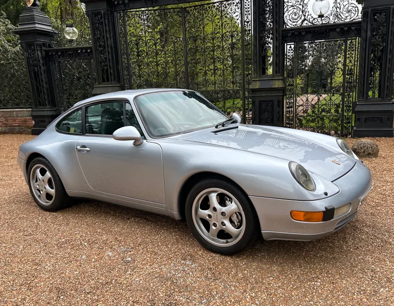 1995 PORSCHE CARRERA 4 911 (993) 6 SPEED MANUAL (LHD) This highly collectable Porsche 911 (993) Carrera 4 6 speed manual was supplied by Sonnen Porsche of San Francisco BLVD, the original invoice from Sonnen Porsche is within the history file. Finished in Polaris Silver Metallic with Classic Grey leather seats, having benefited from California’s dry climate the body and paintwork are in immaculate condition as is the interior commensurate with the low mileage of only 58, 896 miles. This desirable 6 speed manual Carrera, four wheel drive benefits from air conditioning, CD player, sunroof, electric adjustable seats, headlight washer, power steering, integrated bumper with extendable rear spoiler. Also fitted with a CAT 5 tracker. In June 2021 at 57, 775 miles the Porsche had a full recommission at renowned Porsche Specialists Gantspeed to ensure perfect mechanical condition, full details are within the history file along with the invoice totalling £2, 921. Within the file are details of its American service history, the Carrera was imported into the UK in 2018 and since then it has remained in a private collection dry stored and has covered very few miles. Comes with a service book, owners manual, V5C document and print out of service, mileage and ownership history. This iconic example of Porsches final version of the air cooled engine is widely regarded as the best generation of the 911 ever produced. Established in 1972 Kim Cairns is a family run business offering a wealth of experience and professionalism. In addition to car sales we have an excellent after sales centre, all of our services and MOTs etc are done in house. Free delivery to England, Wales or to any UK port. International transportation can be arranged. Part exchanges of both classic and modern cars welcome. Licensed credit broker dealing with major finance houses.