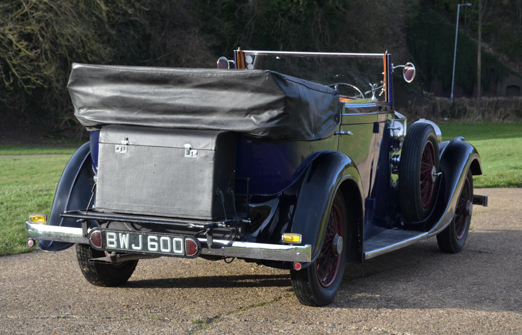 1936 Rolls Royce 20/25 all weather tourer by Offord. Chassis number: GBK36 Registration number BWJ600 A lovely & unusual 20/25 cared for by a Mr Trevor Boyd Maunsell for 48 years. It sold in 1960 for the princely sum of £375.00. We took the car from him & sold it a decade ago to the current Austrian owner. The car has a huge history & provenance amongst the best I have ever seen including a massive bills file & sequential MOT's back to 1960. The engine was rebuilt about 5000 miles ago by Marque specialists Ristes. & there is a photographic record of this work. After the rebuild the car was painstakingly run in at 30MPH including a trip back to Ristes to torque down the head, which again there is supporting documentation for. The car also had a new cylinder block in the late '40s courtesy of the Rolls Royce factory as the original one was deemed to have a defective casting. This was completed free of charge by Rolls Royce. The engine fires immediately & runs sweetly in well oiled silence. A new cylinder head has recently been fitted under the current ownership. The body on the car is by Offord. A south London coach builder better known for Alvises & Bentleys, who bodied very very few Rolls Royce motorcars. It is a one off all weather tourer & the hood is simplicity itself to raise or lower. It has roll up windows front & rear & also a rear Auster screen to protect occupants in the back. The condition of the car is beautifully patinated & quite the opposite of what one finds on freshly over restored models. The car starts instantly & drives beautifully easily holding station in motorway traffic. The open touring arrangements make it an ideal family car for outings & picnics. The car has a motoring trunk fitted to the rear. There are dual trumpet horns up front & a centrally mounted spot lamp. Twin side mounts adorn the running boards. The car had a repaint some 12 years ago in its current livery of indigo blue over black so the paint presents very well. The interior is largely original maroon leather with the exeption of the front seat that has been reupholstered in a close colour match to the rest of the interior. The springs have also recently been wrapped in oiled bandages & new leather gaiters put over the top. We sold this car to the current owner in Vienna about a decade ago. He is now ready to pass it on due to his advanced age. The car is both UK & Austrian regaistered meaning no taxes to pay. It is a very very sweet running car & was maintained for about 30 years by Hofmann's of Henly whilst under the tenure of the late Graham Ashley-Carter. The then owner was meticulous in how he looked after it with only distilled water ever being put in the radiator etc. This 20/25 is a great driving car & also eminently practical for family useage. The hood is spring loaded making for very easy raising & lowering by one person.