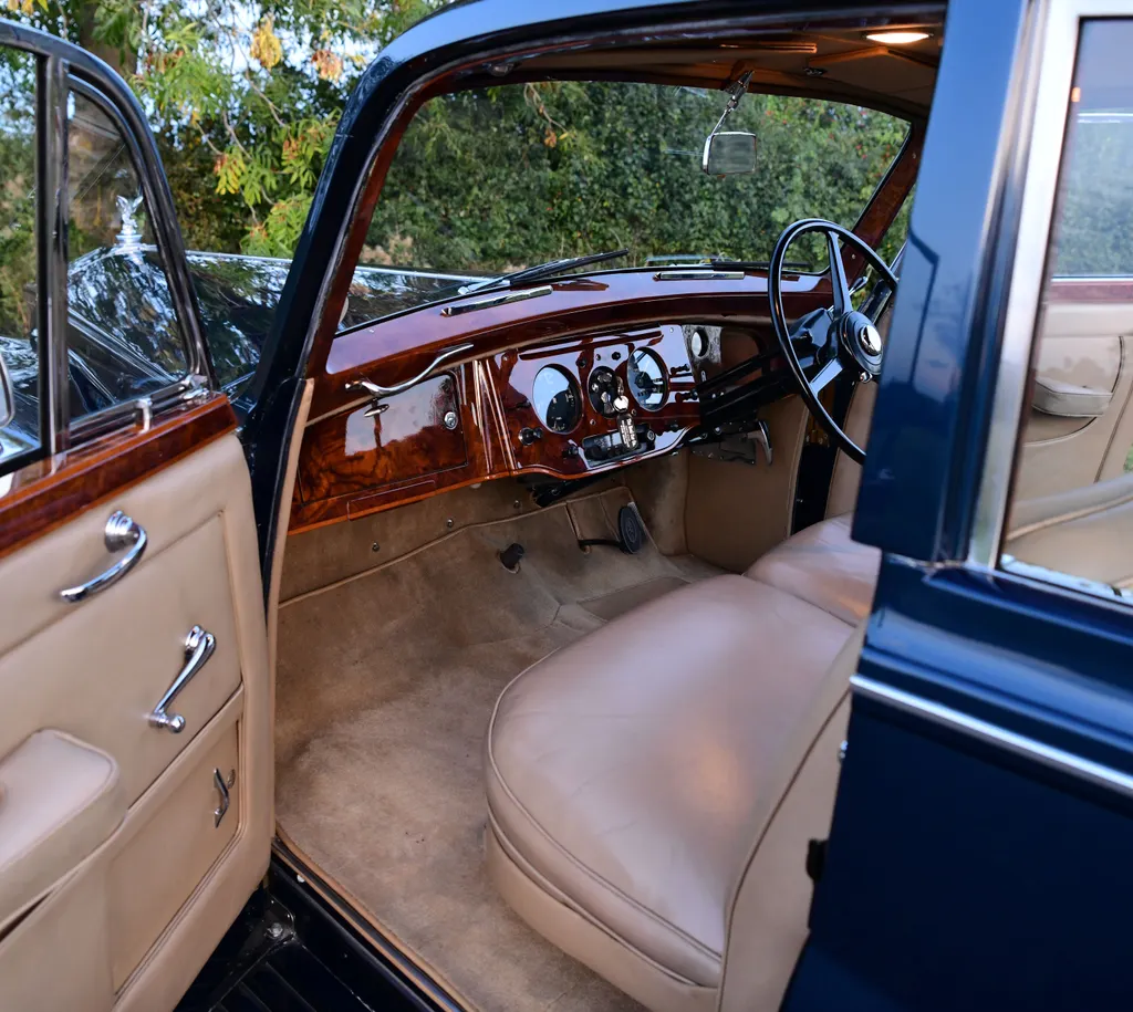 1954 Rolls Royce Silver Dawn Auto by James Young Chassis Number: STH95 Registration Number: JMB31 One of just 9 examples produced by James Young in Aluminium to this design & this one benefits from being one of the late ones on what would have been a big boot chassis with the larger engine & automatic gear box as an optional extra. The car comes to us in impeccable order having been purchased by a French wine Chateau in 2001 and fully restored around 2003 including a bare metal respray in metallic Oxford Blue to a very high standard. At the same time the interior was re-trimmed in Beige leather which we find in beautiful condition today. The woodwork was likewise removed & refinished & is of a quality & quantity far in excess of a standard steel siver dawn extending to the rear picnic tables. Major work was also done more recently in 2017 to the engine & gear box to put the car in superb running condition. It now comes to us as part of an estate sale from the deceased owner who clearly spent money upon it & was fastidious in its care. Early History is as follows: In March 1955 the car was supplied to a titled owner in Scotland (J W Brook) in Glasgow. JW Brook died in June 1955, the car was then sold to Fred Fishwick & Co Ltd (autodrome engineers) Manchester in December 1955. In February 1956 the car passed to John Gorna (solicitor) in Manchester who owned it until December 1961 when it was bought by CJM Ommanney (Barrister) of London. This is a great example of a coach built Silver Dawn & is to our mind far far more desirable then the stadard steel ones being far more rare & stylish. Call Richard Biddulph. Mobile ++44 (0) 7967 260673 Simone Della Corte Mobile ++44 (0) 7377070943 Sales & Valuations Vintage & Prestige of Northampton Ltd. richard@vandp.net www.vandp.net Showroom: 2 Ryehill Ct, Lodge Farm Industrial Estate, Northampton NN5 7UA Viewings & Visits Strictly by appointment only please. We have on site long term storage for over 200 cars with 24 hour security & covered trailer delivery to customers anywhere in Europe.