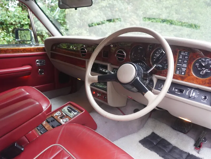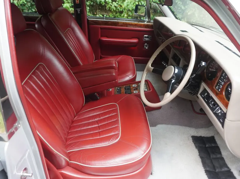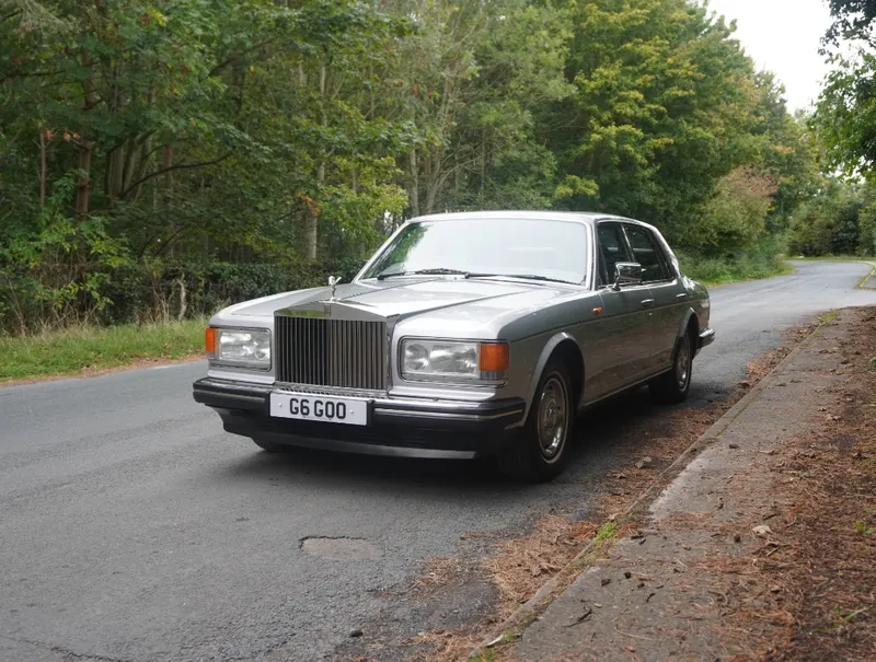 This beautiful, superbly prepared Rolls Royce Silver Spirit has covered just 50,000 miles from new and retains a fantastic history dating back to new. First registered on the 31st of August 1989, this Rolls Royce Silver Spirit was supplied by Merlin Cambria Ltd of Cardiff to Mr Glyndwr Owain Yemm, the owner and Chairman of Maxibrite Ltd. Following his retirement the Rolls Royce was put into his personal name from the Briquette brand and the car stayed with its first owner until 2001. The Rolls Royce headed up to the Northwest of England and its second owner assigned his personal registration mark G6 GOO which is still with the car today. After three years the Rolls Royce headed to the East Riding of Yorkshire and the car has remained there ever since. The most recent owner purchased the car in 2021, a regular customer of ours, a property developer and keen classic car enthusiast who has an eclectic collection of prestigious motor vehicles. The Silver Spirit comes with its Rolls Royce leather wallet containing all original brochures of warranty, dealerships, and service booklets. The service booklet details services from Rolls Royce Cardiff at 1044, 3320, 9060, 10602 and 12433 miles. Broughtons of Cheltenham RR serviced the car at 14919 before servicing was resumed with Cardiff's Rolls Royce main agents at 18077, 19695, 22180, 23638, 26815 and 28462 miles. In November 2000, Rolls Royce agents Wynham of Cardiff replaced the speedometer and set it back to zero. Further services recorded since the speedo replacement are recorded at 1149, 2985, 4548 and once in the East Riding of Yorkshire, Jaguar main agents Hatfields looked after the car with services at 6680, 12256, 15618, 16440, 17026, 18053, 18432 and 18954 miles. The most recent service was carried out at 21500 miles. Within its most recent ownership, a classic car specialist (former Rolls Royce engineer who spent his years at JCT 600 Leeds) carried out a thorough service and inspection of the car to the tune of £3,159 that included a new oil, air, and fuel filter, spark plugs, thermostat, drive belts, sphere accumulators, 4 new Avon tyres, and new radiator hoses. A few integral parts were reconditioned as well including the radiator, the brake pump, and the NSR window mechanism. A year later, the car returned to the specialists where a further £1,300 was commissioned. The recent course of recommissioning has ensured this Rolls Royce is absolutely on the button and delivers exactly on the expectation of driving such a vehicle. Regal is a word synonymous with Rolls Royce, the silhouette of the silver spirit is one of timeless design. The paintwork holds a beautiful shine and finished complemented immeasurably by the bonnet mascot and chrome accents. Embodying the Spirit of Ecstasy, on the road G6 GOO epitomises elegance. The 6.75-liter V8 engine delivers effortless performance with the figure quoted by Rolls Royce as ‘Adequate'. Transitioning between the gears is a superbly smooth three-speed transmission that sits comfortably at the national speed limit, perfect for those longer drives. Absorbing the imperfections on the tarmac, the self-levelling hydraulic suspension ensures a superbly comfortable ride. Throughout the cabin you are met with sleek chromed dials operating the power windows, mirrors, and steering rake, alongside the switchgear for the electric seat adjustments, heated seat operation and automatic climate control. The capacious rear of the car offers immense comfort for passengers along with vanity mirrors and cigarette lighters. Lambswool over-rugs - a staple of prestigious cars of the era have been incredibly well kept offering an impressive contrast against the St James' Red leather with grey piping found throughout. G6 GOO is a car that boasts provenance, a superb drive, and a stunning aesthetic. For the discerned luxury classic car buyer, this car excels in all aspects and at £19,995 this is so much car for the money.