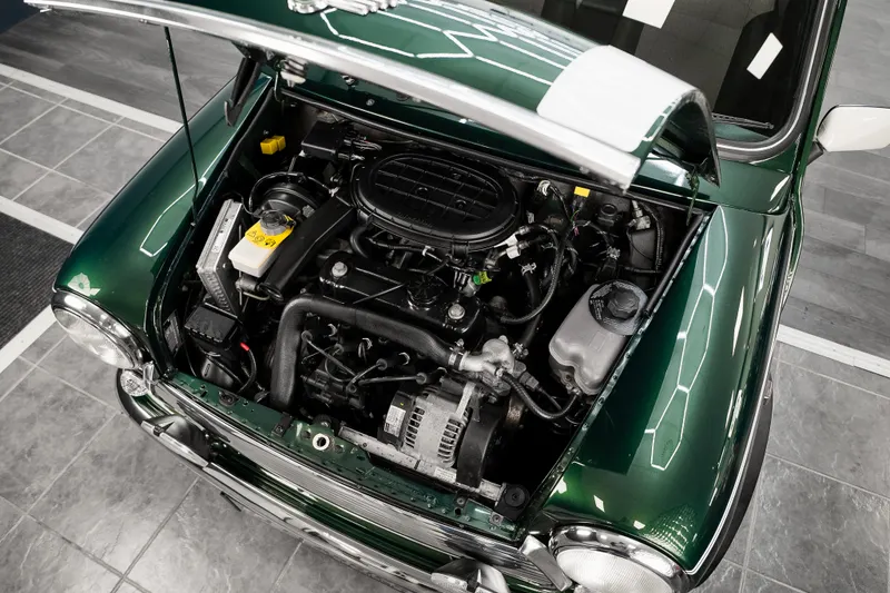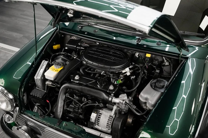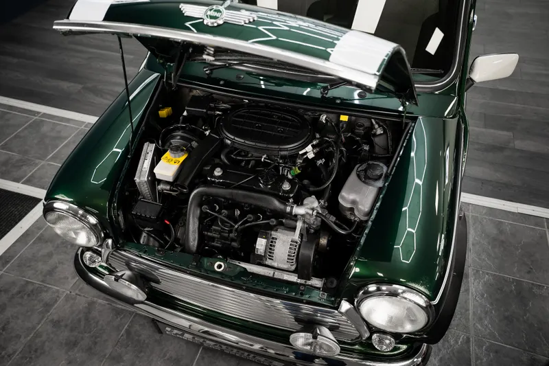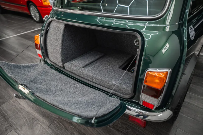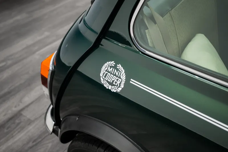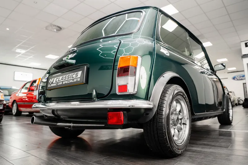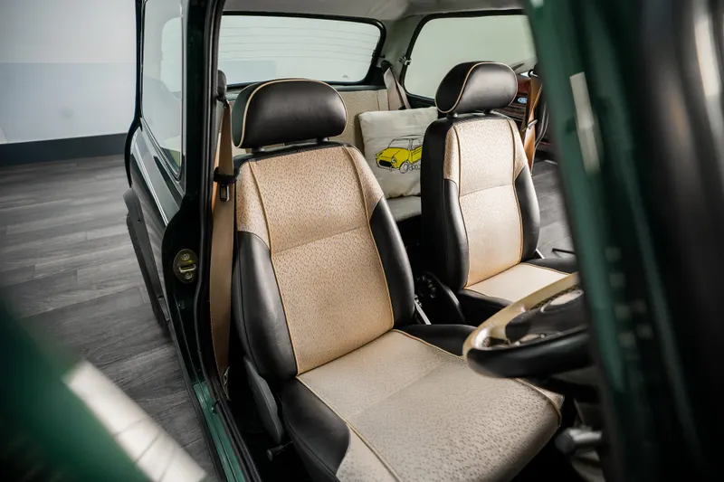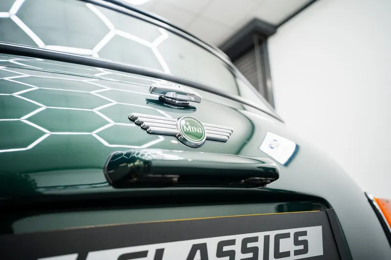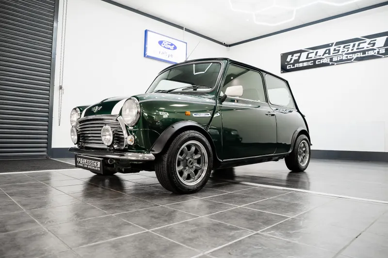 FOR SALE JF Classic Cars are pleased to offer an outstanding time-capsule example of the 2000 Rover Mini Cooper 1.3i, With low mileage from new, this remarkable Cooper presents in a condition that is rarely seen and even more rarely offered for sale. It perfectly encapsulates the final years of classic Mini production, capturing the charm, character and appeal that made the Cooper name legendary. Quite simply, this is a superb survivor that remains remarkably close to showroom condition, offering a unique opportunity to acquire a truly special example of British motoring history EXTERNAL Finished in the iconic British Racing Green (Paint Code: WEO), this 2000 Rover Mini Cooper presents exactly as a Cooper should...timeless, instantly recognisable and beautifully proportioned. The paintwork displays a deep, uniform gloss from front to rear, with a vibrant, lustrous finish that highlights the Mini’s crisp panel lines and unmistakable profile. Condition throughout is exceptional, with the exterior clearly benefiting from careful ownership and minimal use. The front elevation is defined by a full slatted chrome grille, gleaming and free from corrosion, complemented by a full wrap-around chrome front bumper that sits perfectly aligned and presents in superb order. All exterior chrome trim remains bright and untarnished, enhancing the car’s classic character. Clear front indicators and the original circular headlamps remain chip and damage free, while the factory-fitted Oban-mounted spotlights complete the authentic Cooper look. Running along each flank are the legendary white Cooper pin stripes, crisp and correctly positioned, adding contrast against the rich green paintwork. A Mini Cooper crest positioned correctly sits proudly on the rear wing, while the white bonnet decals bearing the John Cooper signature further underline the car’s heritage and authenticity. The contrasting cream-coloured roof provides a perfect visual balance, matched by cream colour-coded door mirrors, both of which remain fresh, bright and free from marking. Chrome door handles present beautifully, retaining their original finish without tarnish or pitting. Originality continues with factory glazing throughout, all clear and unmarked, alongside original rear light lenses that remain bright and free from fading or damage. To the rear, a wrap-around chrome bumper mirrors the quality of the front, while all badging front and rear remains original and correctly positioned, exactly as Rover intended. A final detail is the chrome petrol filler cap, adding a subtle yet period-correct flourish, along with a black-mounted roof aerial, neatly positioned and in excellent order. Overall, this Mini Cooper’s exterior is a superb showcase of originality, presentation and classic British style a beautifully preserved example that would sit comfortably in any serious collection INTERNAL The interior of this 2000 Rover Mini Cooper 1.3i is a beautifully preserved and highly evocative space, finished in the desirable Ash Cloth with Black Leather trim (Trim Code: SMM) and presented in very, very good overall condition. Opening the doors instantly transports you back to the late nineties and early noughties, capturing the unmistakable atmosphere of a period Rover showroom with remarkable authenticity. The front seats are upholstered in the correct ash cloth centres with supportive black leather bolsters, all of which remain exceptionally well preserved, showing no unsightly marking or wear. They are complemented by black headrests with beige piping, adding a subtle yet distinctive contrast. To the rear, the seats present as virtually unused, their condition suggesting they may well have seen little to no occupancy since new. All seat adjustment and folding mechanisms operate exactly as intended. The black interior carpeting remains immaculate throughout, protected from day one by the original Mini Cooper embossed overmats, which remain fitted and in excellent order. Front and rear black leather-effect door cards present in equally fine condition and are complete with front door pockets, wind-down window handles and door release levers, all functioning smoothly and correctly. Above, the beige headlining sits taut and mark-free, maintaining a fresh and original appearance. The focal point of the cabin is the walnut-effect dashboard, which remains unmarked and beautifully finished, its wood grain displayed elegantly and without fading or damage. To the passenger side sits a chrome directional heater vent alongside the push-button dash-mounted glovebox, while centrally positioned is the classic analogue time clock, reinforcing the Mini’s traditional charm. A period-correct Pioneer flip-off face CD head unit (DEM2920MP) is neatly installed, perfectly in keeping with the era. The driver’s binnacle houses three circular, cream-backed instruments with black numerals. To the left, the speedometer displays a remarkably low 27,228 miles from new; centrally sit the fuel and temperature gauges, with the tachometer positioned to the right. All cursory warning lights illuminate and extinguish exactly as per manufacturer specification. Further controls are thoughtfully arranged, with the headlamp adjuster switch positioned to the right of the binnacle alongside the driver’s chrome heater vent. Below the audio system, a row of push-button switches includes the rear fog lamp, brake system warning test, hazard switch and heated rear screen. A two-speed interior fan button and the directional air vent slider switch, both operating correctly. Finishing touches include a beige leather gear gaiter in excellent condition, paired with the correct beige and black gear knob, and a three-spoke black and beige steering wheel proudly displaying the Mini Cooper crest at its centre. To the rear, the snap-clasp rear windows function exactly as intended, completing an interior that feels cohesive, original and remarkably well preserved. Overall, this cabin is