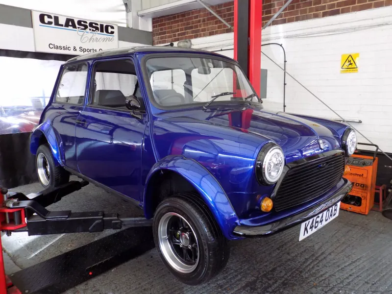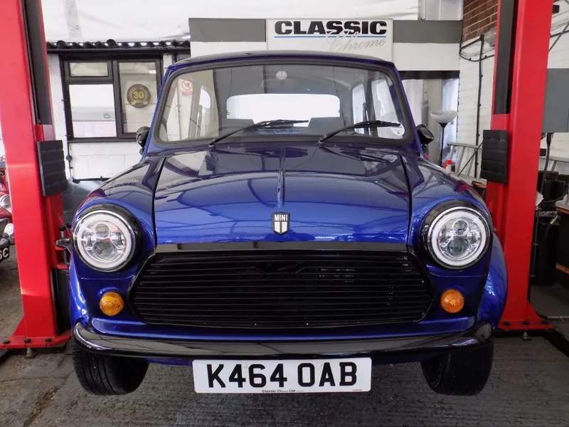 This unique Rover Mini Sprite 1275 was first registered in Worcester on 25th January 1993. In late 2022, the car was acquired by specialist restorer GP Auto Design of Park Royal, London and they completed a comprehensive body restoration and full repaint to a very high standard. Restoration Details The works included: Replacement of both front wings, front and rear valance panels, and door skins Floor panel repairs and new wheel arch spats A complete repaint in BMW Marina Bay Blue Metallic with a Black roof, Black bumpers, headlight rims, and racing-style door mirrors (original colour when built was White) Interior refreshed with new black carpets, LED headlights, new badges, and a set of 12'' Mamba alloy wheels Mechanical and Interior The car retains its original 1275cc Mini Sprite engine and gearbox, both in excellent condition. The original Grey velour seats and trim remain in place, complemented by a leather steering wheel. Ownership and Documentation This Mini has had five former keepers from new – the first three being lady owners, with the most recent owner taking possession in February 2024 when we sold it to him on behalf of GP Auto Design. It is only being sold by him now due to his impending move to the USA. The car has covered a genuine 59,041 miles and is supported by: Full MOT history and certificates from 2001 to the present - current MOT until May 2026 Previous maintenance invoices Clear HPI and National Mileage Register checks Historic V5 documents confirming ownership history Condition and Warranty The vehicle is presented in lovely condition throughout and drives beautifully. On sale, it will receive a pre-sales service and check-over and come with a 3-month mechanical warranty, which can be extended or upgraded if required. Summary A superbly restored and highly attractive Mini Sprite 1275, finished in a distinctive and contemporary colour scheme. An excellent example of this increasingly desirable model, and one which represents a sound long-term investment. Now available for viewing at our Mortlake showroom, South West London. Important Notice: Classic Chrome Ltd makes every effort to ensure the accuracy of this information. All statements regarding provenance and condition are provided in good faith based on the vehicle’s history and information supplied by previous owners. Prospective purchasers must satisfy themselves as to the vehicle’s condition and suitability before purchase. This does not affect your statutory rights. 12'' Mamba Alloy Wheels, Velour Trim, Leather Steering Wheel, Front Disc Brakes, Rear Drum Brakes, 4 Speed Manual Gearbox, Hydraulic brakes, LED Lights, Synchromesh transmission